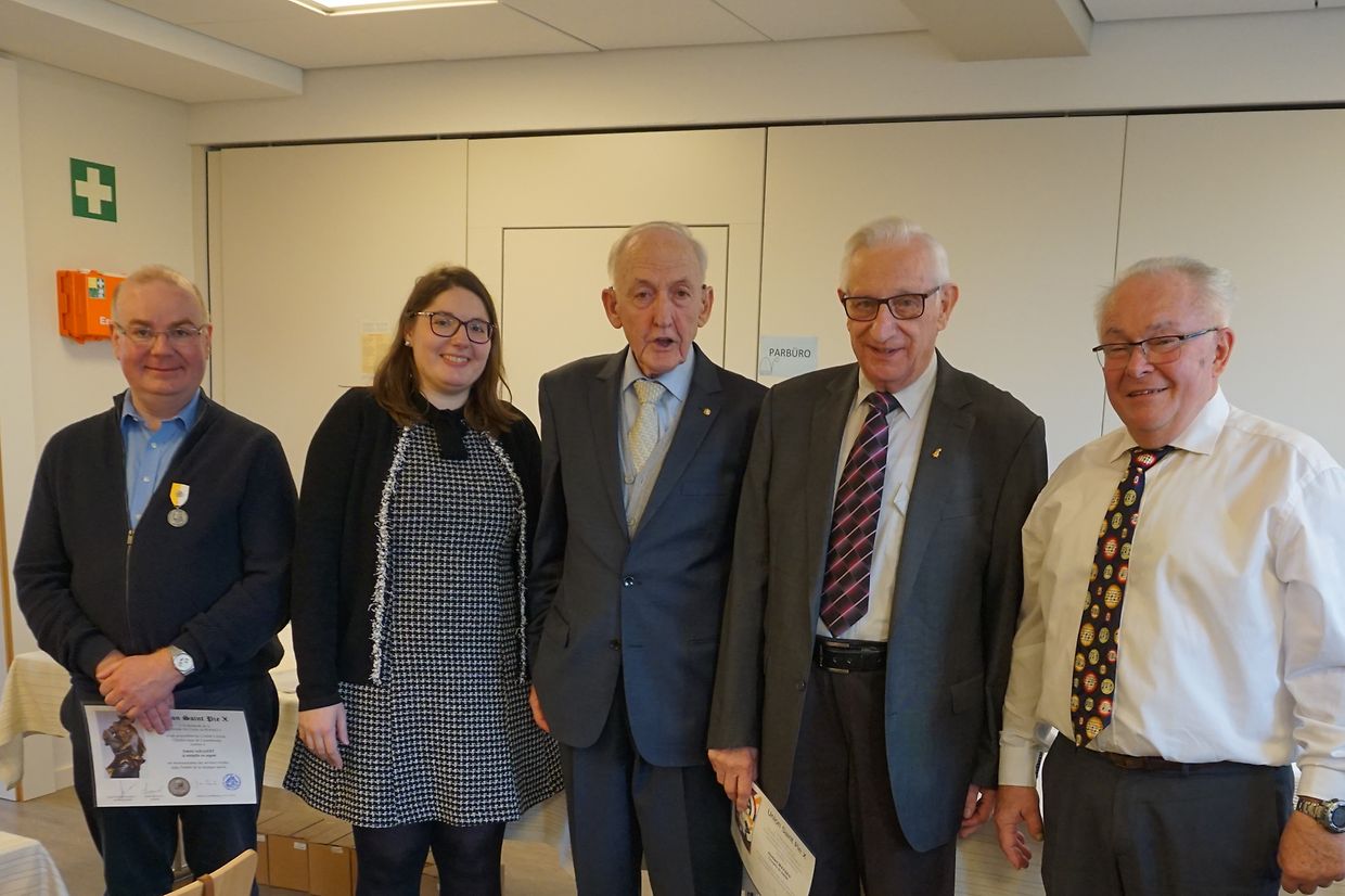 Op Cäciliendag goufen vum Vertrieder vum Pius-Verband, dem Här Jemp Stronck, 2 Memberen vun der Chorale Ste Cécile Réimech geéiert: den Här Patrick Wilwert, deen als Organist zanter 1999 mat séngem fantasteschen Uergelspill Sonndeg fir Sonndeg d’Leit vu wäit a no begeeschtert, desweideren den Här Norbert Watgen, eisen eelste Sänger, fir 5 Joer treit Matsangen am Chouer.
