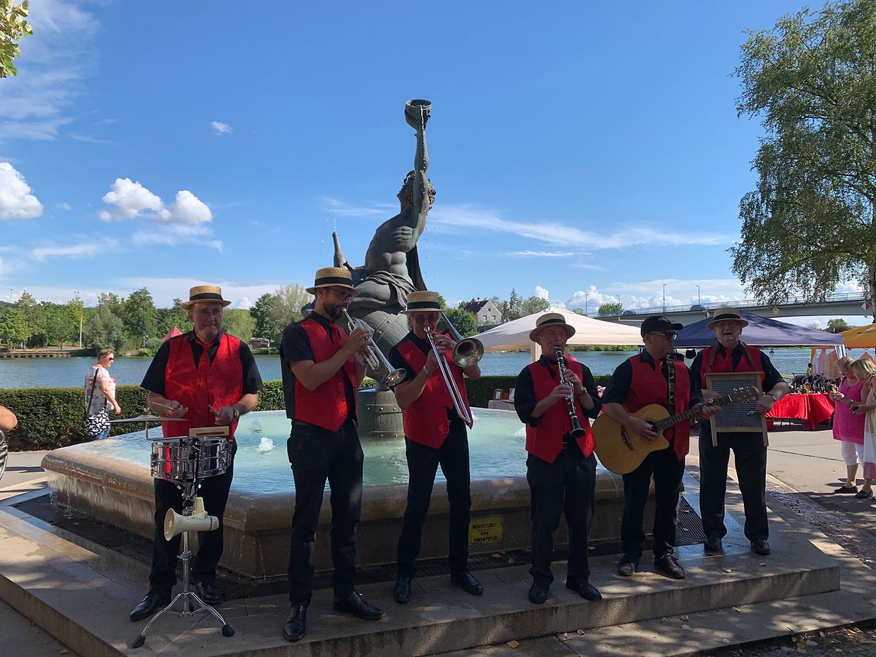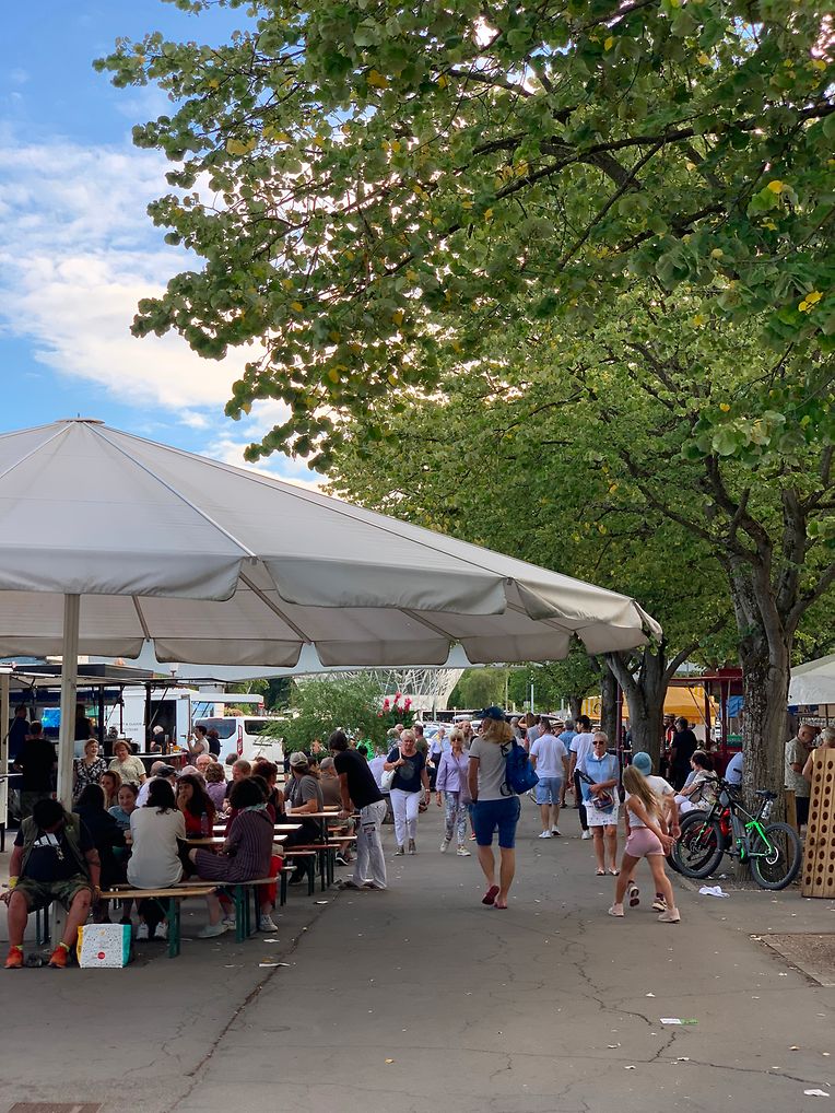 Auf der Esplanade, auf dem Place Kons, bei Sonnenschein, direkt am Fluss und unter freiem Himmel, überall zufriedene Gesichter. Ein Bild für die Götter.
