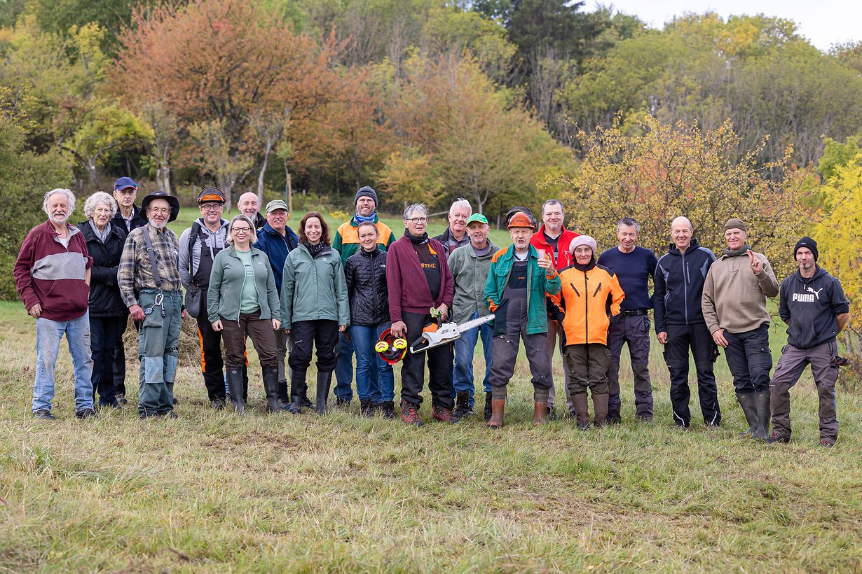 Anfang Oktober wurden «um Scheierbierg», in einem Teil des Natura-2000-Gebietes «Moselle supérieure» von zahlreichen Freiwilligen Pflegemassnahmen durchgeführt. Diese Arbeiten, die im Rahmen des «LIFE ORCHIS- Projektes» organisiert werden, stehen jedes Jahr im Herbst auf dem Programm. Durch diese regelmässigen Massnahmen konnte die ursprünglich stark verbuschten Parzellen in einen Halbtrockenrasen mit einer aussergewöhnlichen Vielfalt an Pflanzen und Tieren umgewandelt werden. Mehrere Orchideenarten, sowie der seltene Ackerwachtelweizen sind wieder in grosser Anzahl auf dem Standort anzutreffen, was ein sicheres Indiz für eine stark gesteigerte Biodiversität ist.