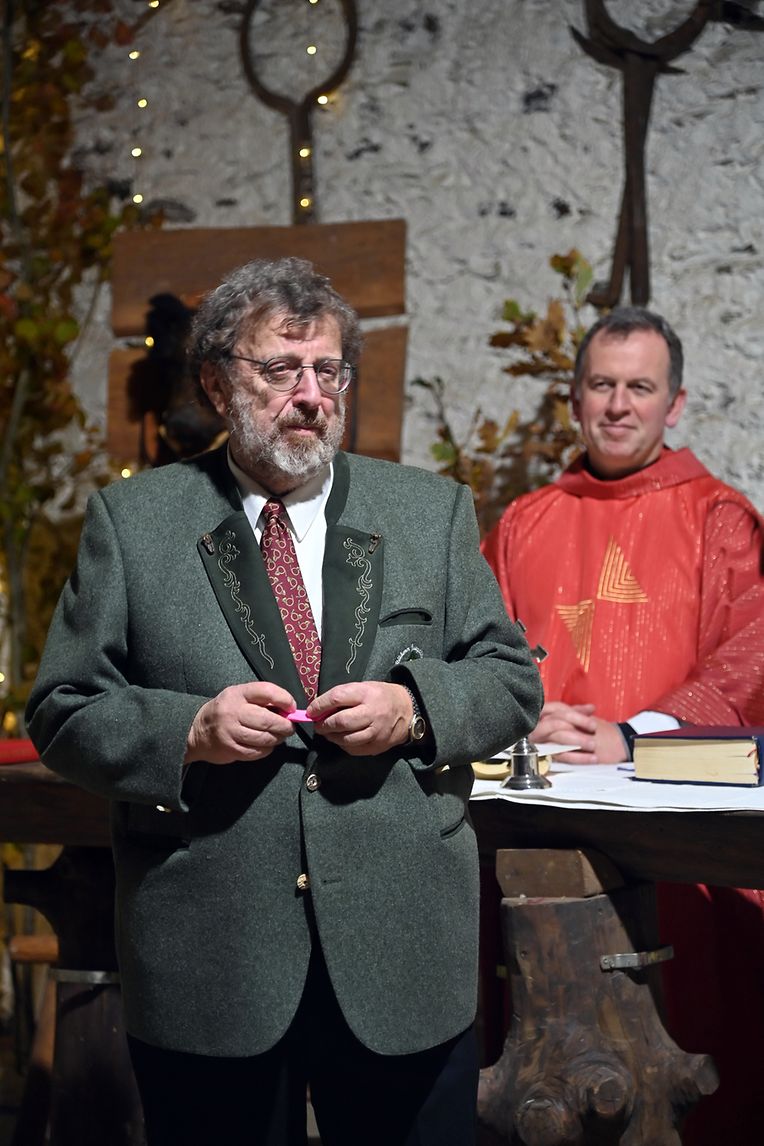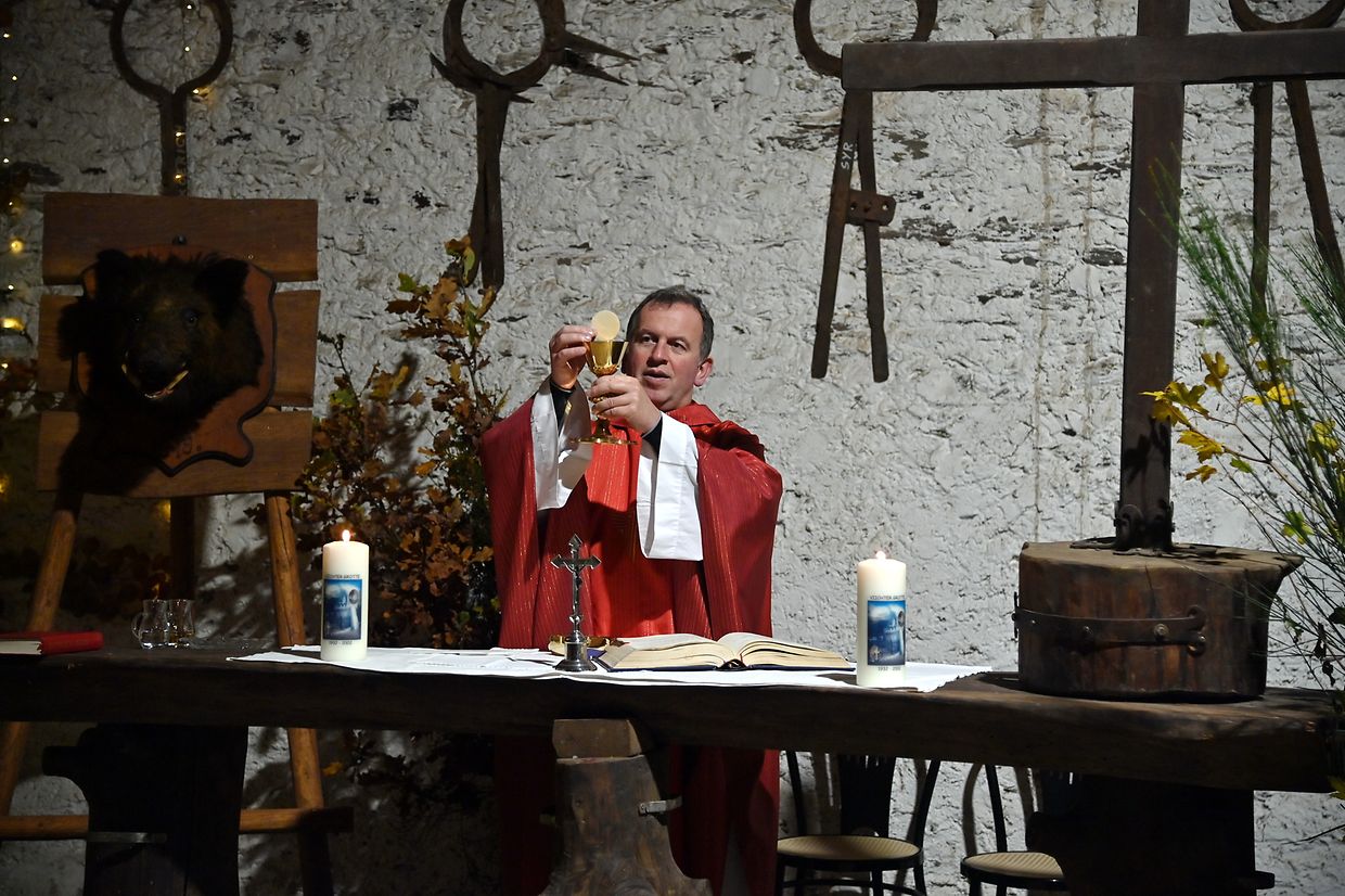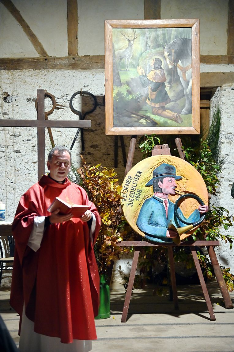 Randschelt: Zënter 1990 ass et di schéin Traditioun vun de Réidener Juegdbléiser, vir d’Haupeschmass all Joer an engem aneren Eck vum Kanton Réiden ofzehalen. An engem romantische Kader mat schéiner Juegddekoratioun, gouf de Gottesdéngst dest Joer an der Scheier vum Musée Thillenvogtei bei vollem Haus zu Randschelt zelebréiert. Passenderweis hun di Réidener Juegdbléiser ënnert der Leedung vum Marc Pletgen fir d’Verschéinerung vun deser Haupeschmass gesuergt. A senger Predigt huet den Abbé Vincent Billot un den hëllegen Hubertus, Schutzpatréiner vun de Jeeër erënnert, den ëmt d’Joer 655 zu Toulouse gebuer gouf an den 30. Mee zu Tervuren verstuerwen ass. Sein spezielle Merci huet hien de Réidener Juegdbléiser gesoot fir di schéin Traditioun, d‘Haupeschmass all Joers op en Neis mat hiren klangvollen Instrumenter ze verschéineren. Och de President Guy Schank huet zum Schluss vun der Massfeier alle Bedeeligten séin Merci ausgedrëckt, déi zur Gestaltung vun deser 33. Haupeschmass am Kanton Réiden beigedroen hun. Mat engem vun de Juegdhornbléiser offréiertem Concert mat Juegdmusek an engem Glas Glühwäin huet dess schéi Feier zu Randschelt hiren würdigen Ofschloss fond. (CR) (Foto: Charles Reiser)