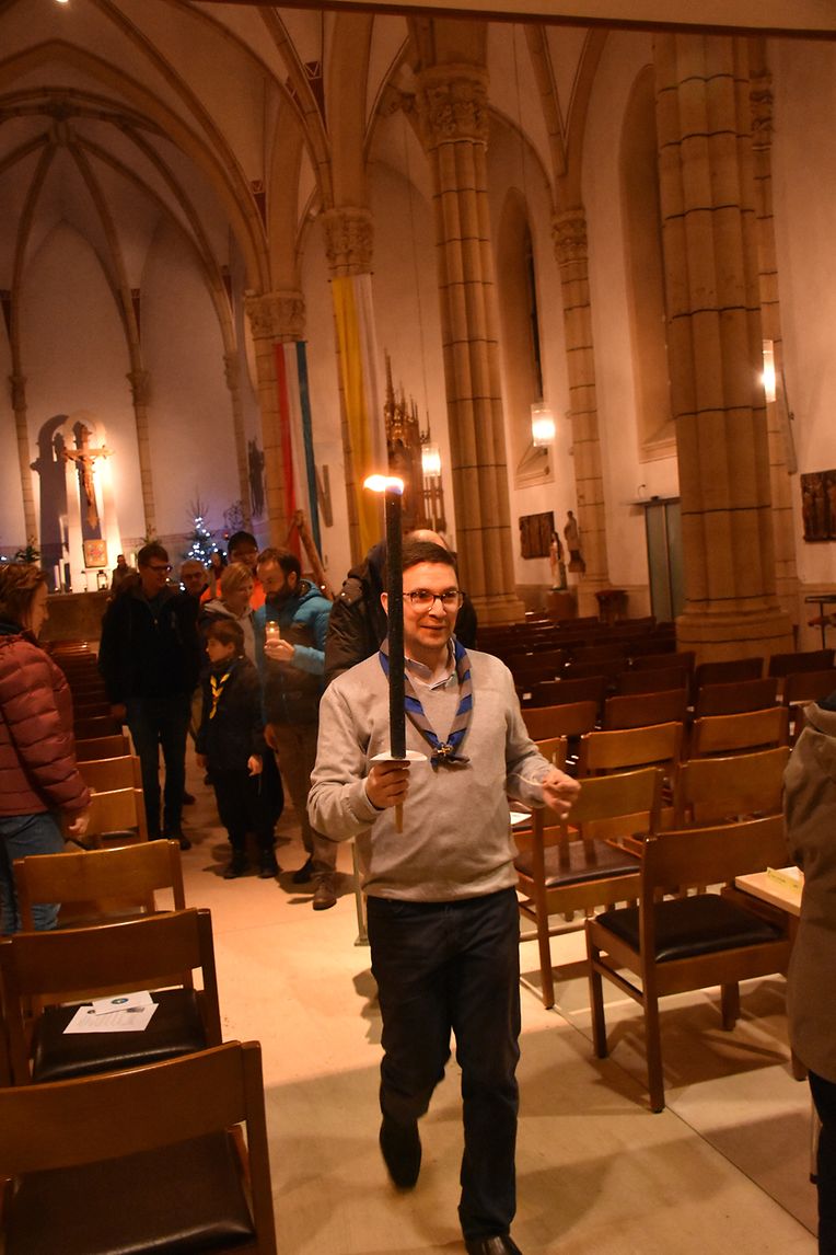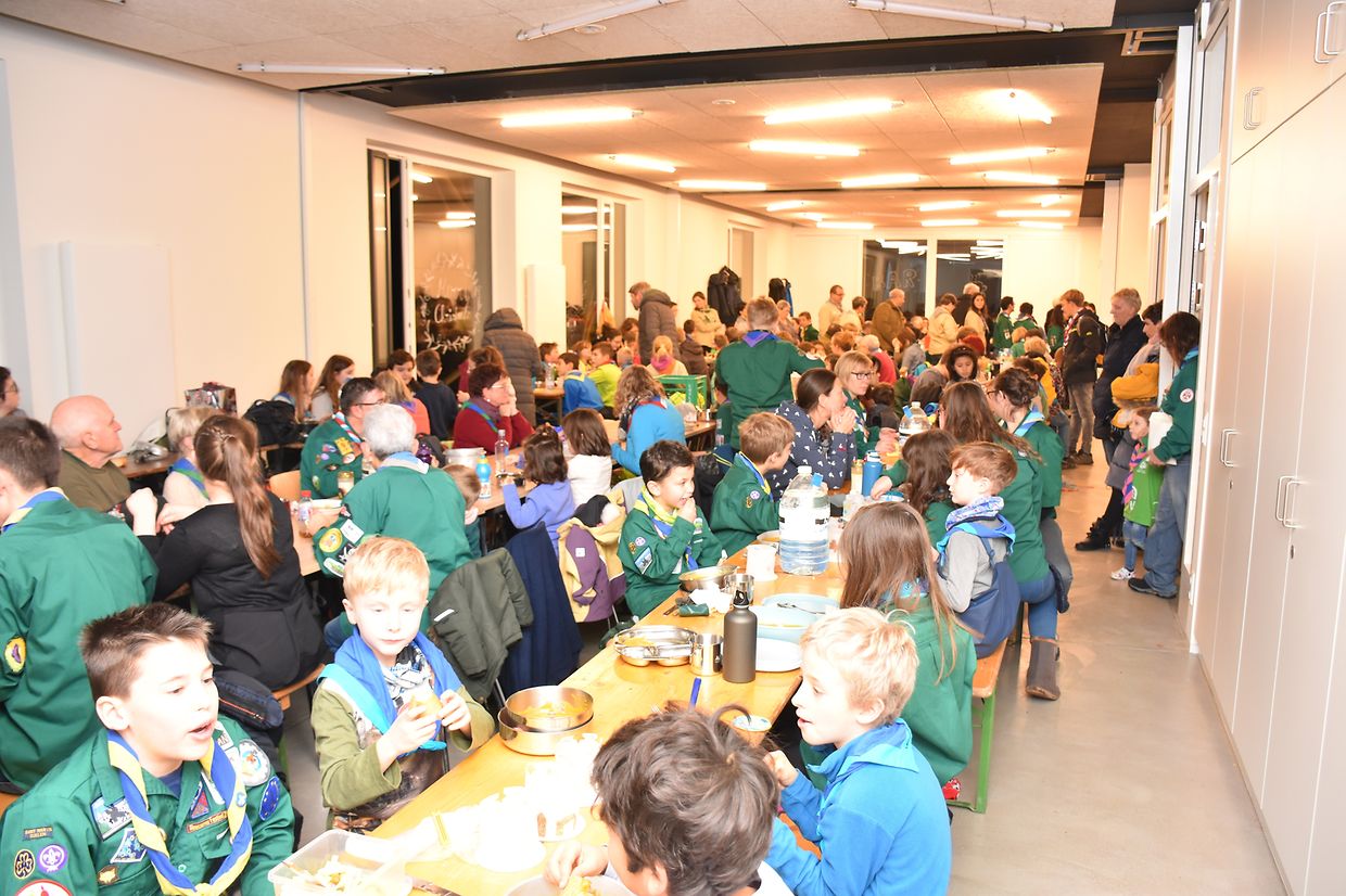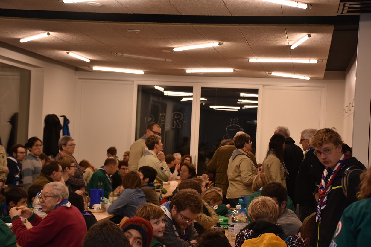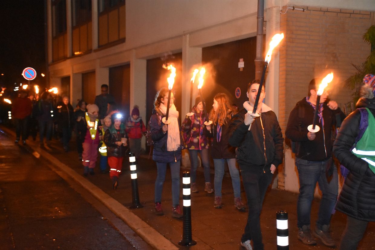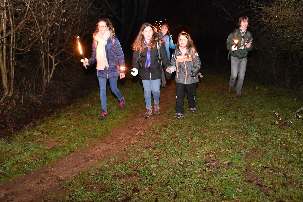 No der Veillée, ass Friddensliicht dun am Fâkelzuch vun der Kiirch an de Scoutschalet gedroen gin. Hei ass Friddensliicht no der Stärkung dun un déi eenzel Gruppen ausgedeelt gin.