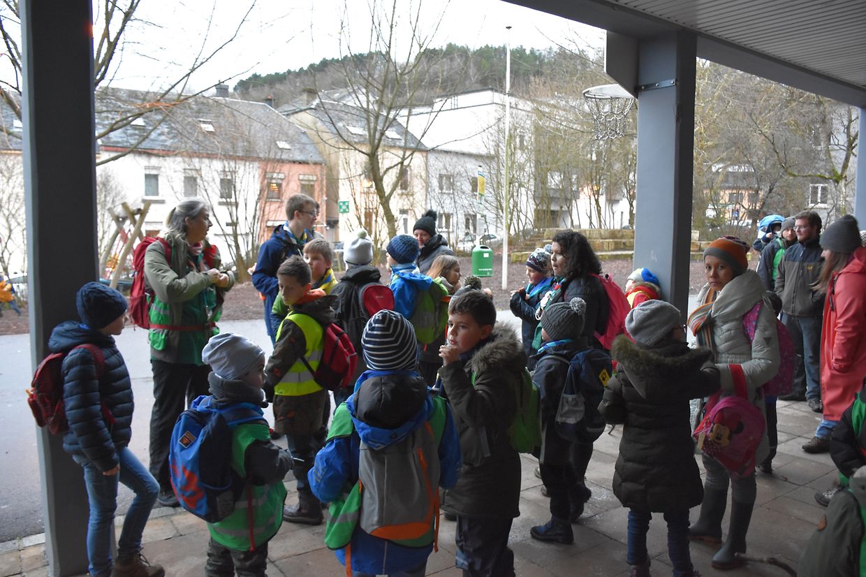 Samschtes Moies um 10Auer00, huet de Rodanger Grupp an EAR-Ekipp sech getraff fir déi aller Läscht Virbereedungen. De Kinderpunch an de Glühwäin hun missen prepareiert gin. De Wee fir de Rallye mettes huet och nach missen gezeechent gin. Et wuar nach genuch ze din. Dun ass sech nach gestärkt gin, iert déi verschidde Scoutstruppen lues an lues ab 13Auer30 agetraff sin. Dorenner och eng gréisser Trupp vun der DPSG. Biber an Wëllef hun nach eng kleng Lanter gebastelt a sin dun op de Rallye gescheckt gin. Si haaten en Wee vun ongefeier 4km ze maachen fir zu Rodange am Centre Culturel unzekommen, wou se sech e bessen konnten opwiermen an en Téi zoubereed kritt hun. AvEx, CaraPio an RaRo hun sech och géint 14Auer op de Rallye gemaach mat enger Distanz vun 7km fir AvEx an 10km fir CaraPio an RaRo. Op all dësen Wëer sin ennerwee Posten gewiecht, wou sech vill mam Thema Fridden auserneen gesaat gin ass.