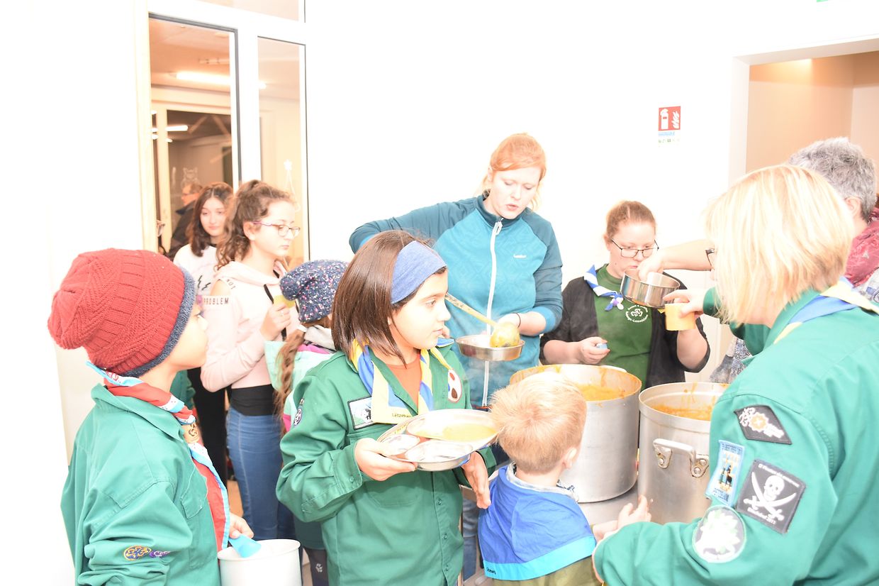 Freides, den 21. Dezember hun sech zu Rodange och schon 12 Guiden a Scouten an Mataarbechter am Rodanger Scoutschalet „am Doihl“ getraff fir nach Preparatiounen ze maachen, fir den flotten Dâg deen Samschtes op eis gewuard huet. Vill Geméis huet missen geschielt an geschnidden gin fir eng Gudd Geméiszopp ze kachen. Dës ass et Samschtes no der Veillée an dem Fâkelzuch vun der Rodanger Kiirch bis an de Scoutschalet z’iesse gin.