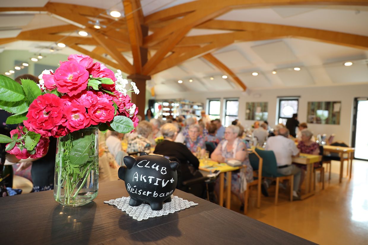 Nach dem gemeinsamen Mittagessen unterstrich Familienminister Max Hahn die Bedeutung der 23 Club Aktiv Plus – darunter auch der Club Aktiv Plus Réiserbann – für ein aktives, selbstbestimmtes Altern sowie deren Beitrag zur sozialen Teilhabe im ganzen Land. Für musikalische Unterhaltung sorgte die Béierbankbänd.