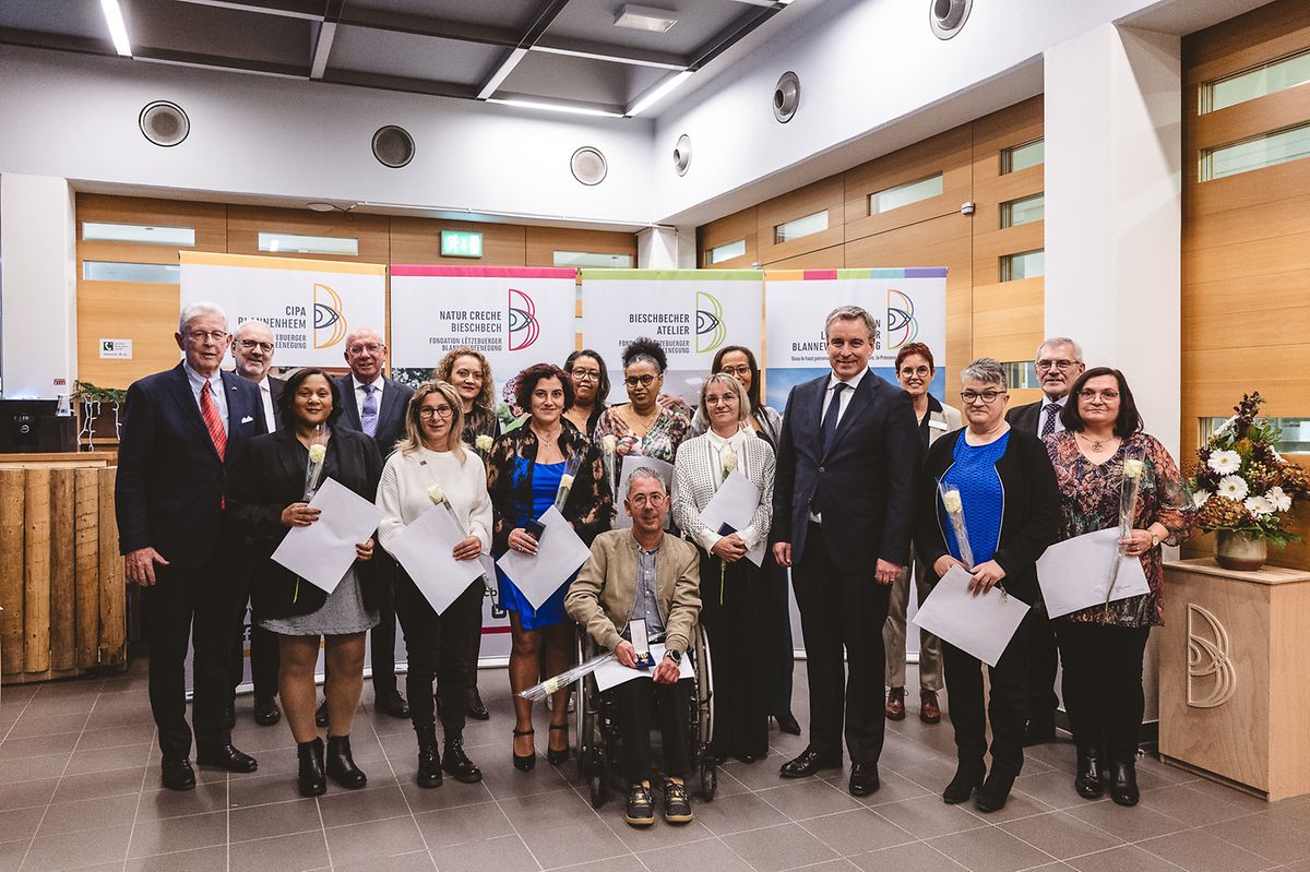 Samedi 16 novembre, dans le cadre de la fête du personnel, la Fondation Lëtzebuerger Blannevereenegung a eu l'honneur de célébrer le dévouement de ses employés. En présence de M. Claude Meisch, Ministre de l'Éducation nationale, une cérémonie solennelle a marqué la remise de distinctions honorifiques nationales à une sélection d'employés méritants de la Fondation.