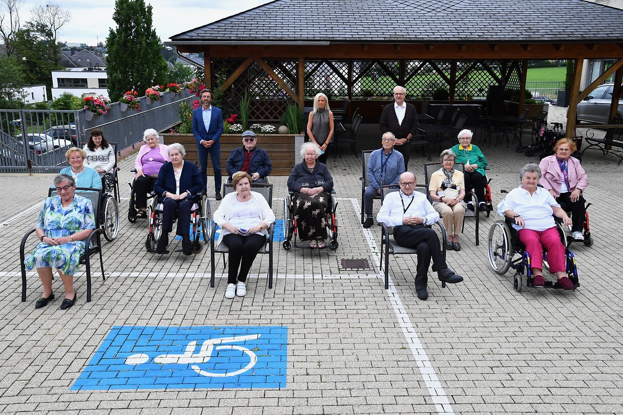Rollingen/Mersch: Es war gleich die zweite gemeinsame Geburtstagsfeier dieses Jahres die Anfang Juli im CIPA- Blannenheem in Rollingen/Mersch wo die Jubilare der Monate Mai und Juni im Rahmen einer kleinen Feier die Glückwünsche von Generaldirektor Christian Erang, Thierry Lutgen als beigeordneter Generaldirektor und Sophie Bernard, Verantwortliche Leiterin für Pflegedienste mit ihrem Personal im geschmückten Festsaal, mit einem „ Happy Birthday“ entgegennehmen konnten. Gefeiert wurde mit Sekt, Kaffee und einem schmackhaften Stück des großen Geburtstagkuchens, während das Orchester- Duo „Top Sound“ für musikalische Unterhaltung sorgte. Die Jubilare : Jeanne Gloden- Muller (102 Jahre), Odile Jung- Kimmes (92), Maria Leven-Schanck (91), Alice Kayser- Gabryelcic, Gertrude Tischer-Metzdorf und Yvette Gentilini- Freyermuth (90), Christophe Klein (88), Marguerite Schumacher und Anne Reuter- Faber (87), Mathilde Neu- Seyler, Yvonne Crasset - Gillet und Marie Ries- Kohl (86), Caroline Mersch- Faber (85), Nicolas Lemogne und Ernest Schmit (84), Mathilde Steffen- Splicks und Elisabeth Paulus- Schmit (82), Léon Von Roesgen und Aloyse Thillmany (81), Marie Fiorini-Wecker (79), Anny Nockels – Schmit (77), Nicolas Briegel (73), Gaston Wiesener und Edouard Stein (72), Aline Mischel (60) und Parick Ourth (58). (CR) (FOTO: CHARLES REISER)