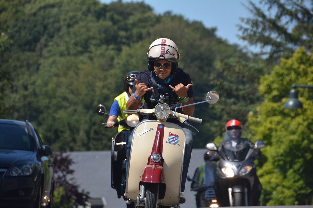 mywort.lu war natürlich stilecht mit der eigenen Vespa mit den anderen fast 200 Teilnehmern aus In- und Ausland auf der 120 Kilometer langen Tour durch das Land dabei.