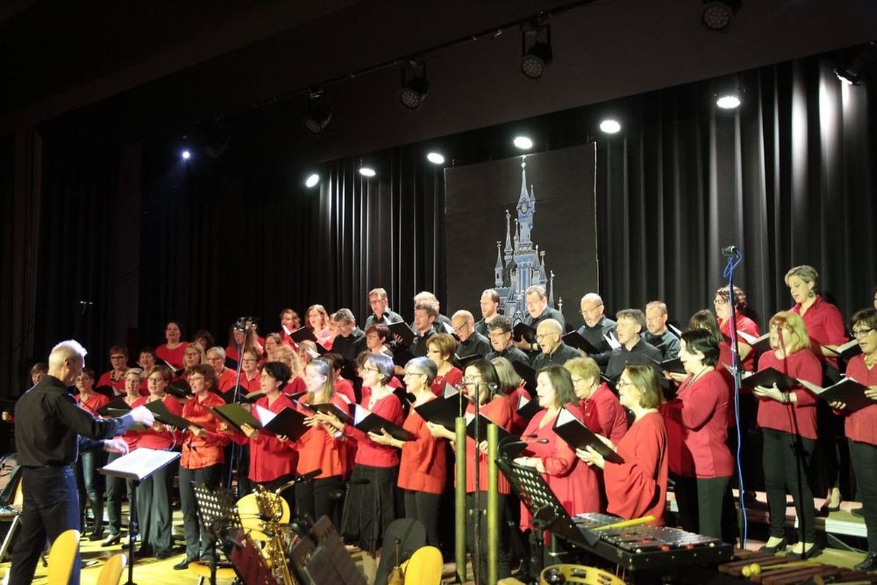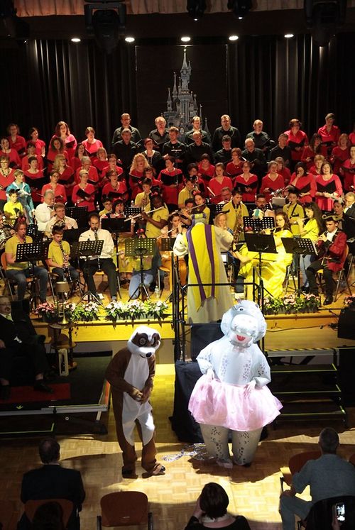 Rolleng/Lamadelaine: D'Harmonie Municipale Rodange & Lamadelaine hat zesummen mat der Jugendmusek "RoLazubi's" op hiere Galaconcert "The Magic of Disney" an de Centre de Loisirs invitéiert. Ennert der Direktioun vum Patrick Stracks sin Stécker wéi Disney Festival, Go the Distance, Evermore an The Lion King de Gäscht an deem gudd gefëllte Sall präsentéiert gin. Duerno war et dann un de RoLazubi's déi eng éischte kéier bei engem grousse Galaconcert dobai konnte sin, dëst ënnert der Leedung vum Fernand Gallo. No enger Paus gung et virun mat dem Invité vum Owend, dem Ensemble vocal Vivace. Dës net grad 60 Sängerinnen a Sänger hun ënnert der Direktioun vum Ulric Evrard, ënnert aanerem, Hakuna Matata, Can you feel the love Tonight an The Beauty and the Beast interprétéiert. Eppes ganz besonnesches haten sech d'Musikanten vun der Harmonie afaale gelooss, si hun sech mat hieren schéinen Kostümer mat den verschidden Disneyfiguren identifizéiert. Op der Bühn soutzen Tinker Bell, Bambi, Peter Pan, Herkules, Schneewitchen, Dornröschen, Belle, fir nëmmen e puer ze ernimmen. Weider Highlights waren de Solo vum Nathalie Eichenseher als Elsa mat "Let it Go", an d'Finale wou d'Harmonie, zesummen mat den RoLazubi's a Vivace " The Lion sleeps Tonight" präsentéiert hun. Duerch den Owend hun de Marcel Ries, d'Renée Gallo an d'Monika Evrard gefouert. Fir di wonnerschéin Dekoratioun huet d'Romaine Stracks gesuergt. D'Präsidentin Marie-Jeanne Goeckel-Schuler war houfreg iwer dee gudd gelongenen Owend an huet de ville Gäscht Merci fir hiert Kommen gesot. En décke Merci goung un all déi , déi um Geléngen vum Galaconcert bedeelegt waren.(Fotoen:Jean-Marc Görtz/www.hmrl-hjrl.org)