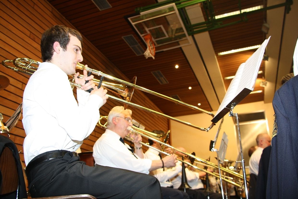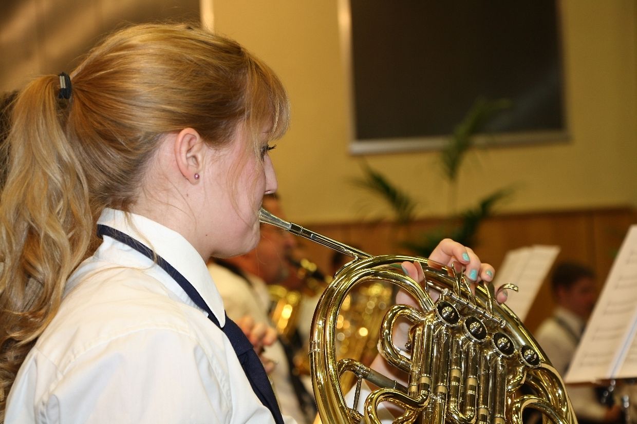 Den zweiten Teil, das Hauptgericht, lieferte die „Schierener Musek“ unter der Leitung von Roland Schiltz, dem ehemaligen Dirigenten der „Harmonie Rollengergronn“ ab. Auf dem Menu standen „Mars der Medici“ (Joh. Wichers), sowie der klassische Leckerbissen „Nabucco“ von Guiseppe Verdi arrangiert von Franco Cesarini. Es folgten Cats-Melodien von Andrew Lloyd Webber arrangiert von Kazuhiro Morita, der „Hämmelsmarsch Revisited“ , eine Komposition von Ivan Boumanns, und mit „Vive la France“ ( Frank Bernaerts) folgte eine musikalische Reise quer durch Frankreich. Mit „Funk Attack“ (Otto Schwarz) endete der zweite Teil der „Schierener“ wobei die zwei Musikantinnen Sarah Thill und Jacqui Da Silva mit Bravour und Charme durch die Menükarte führten. Laut den Kritiken im Publikum boten die zwei Harmonien ein flottes Konzert auf hohem Niveau. Der Nachtisch liess dann auch nicht lange in Form einiger Zugaben auf sich warten. Seit etlichen Jahren treten die beiden Musikvereine periodisch zusammen auf und gemessen am Erfolg werden weitere Kooperationen folgen. (G.L.)