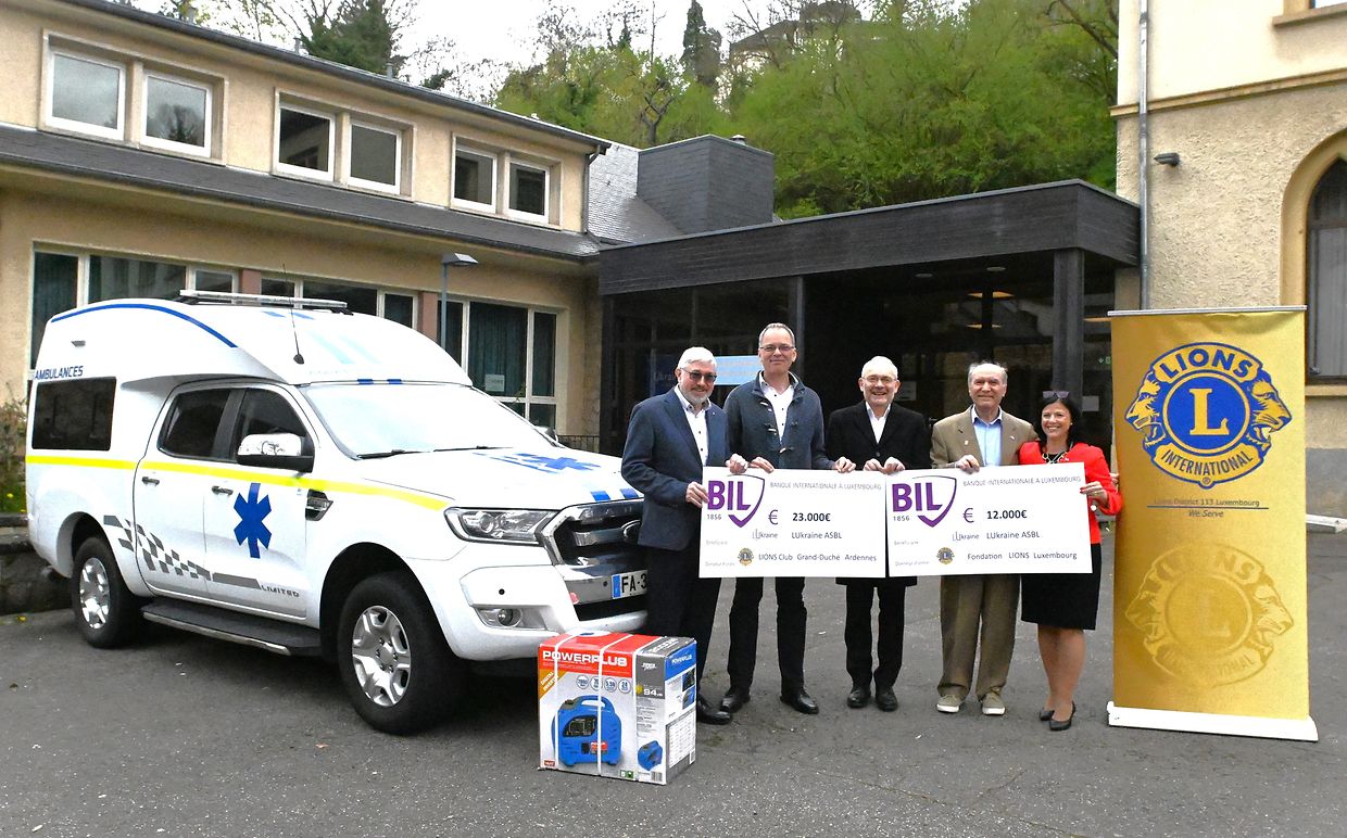 La mobilisation du président du Lions Club Grand-Duché Ardennes, M. François Zuidberg, auprès des membres de son club, a permis de récolter en peu de temps, la somme impressionnante de 23.000 €. La Fondation Lions a soutenu cette belle action de solidarité par un don supplémentaire de 12.000€.