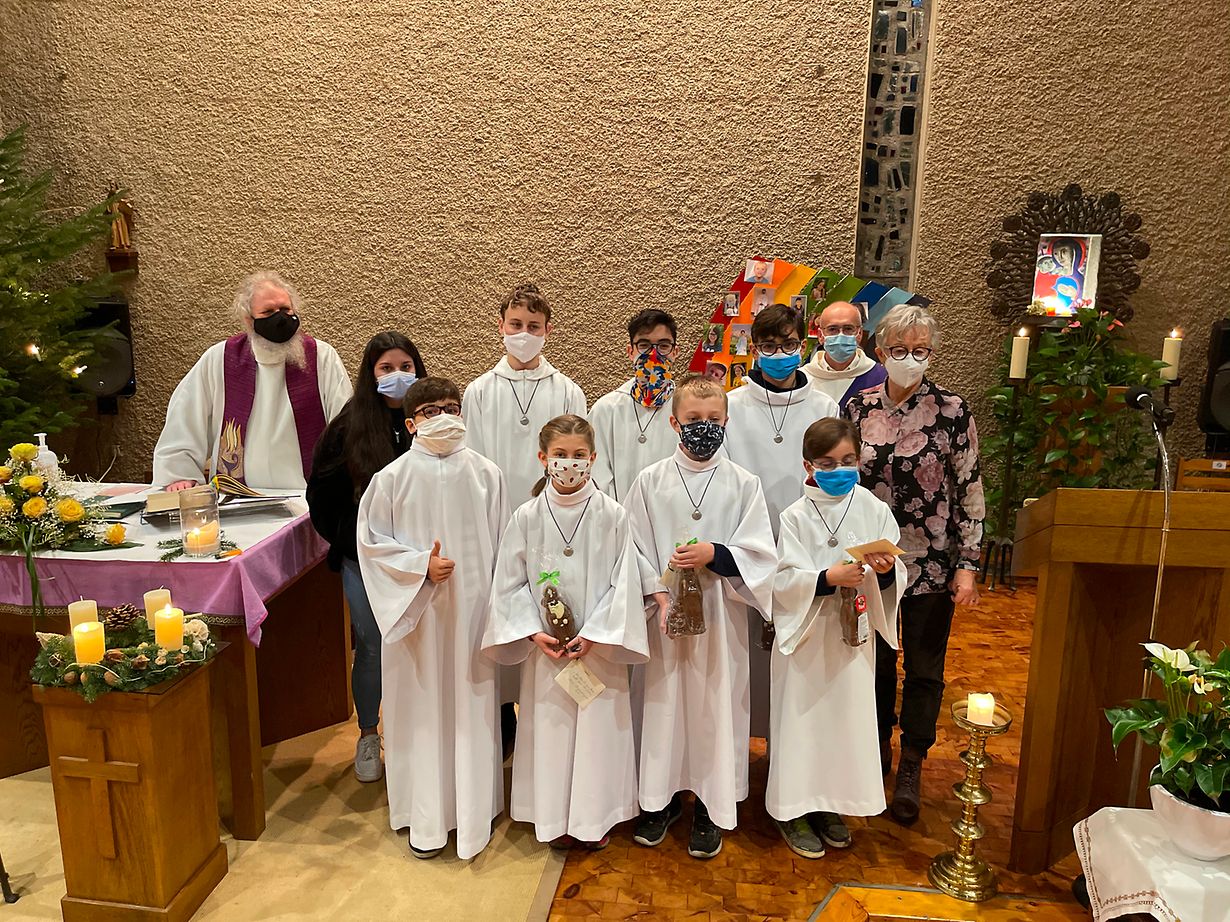 Den 6. Dezember 2020 sin d'Massendënger/innen zu Rued an der Kierch fir hier regelmässeg Präsenz an hiren Asatz geéiert gin.
