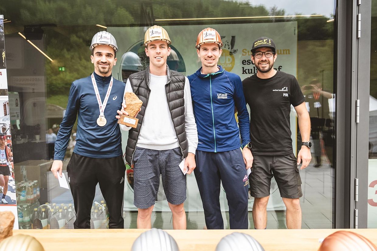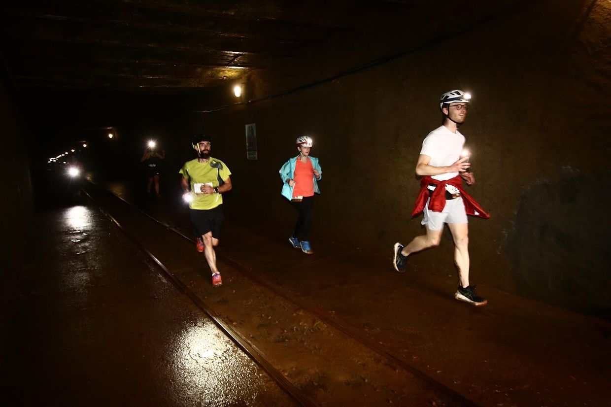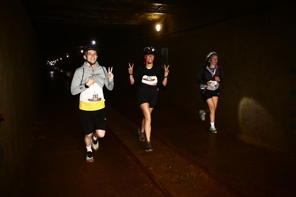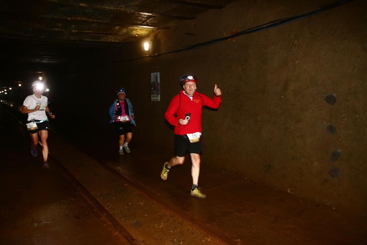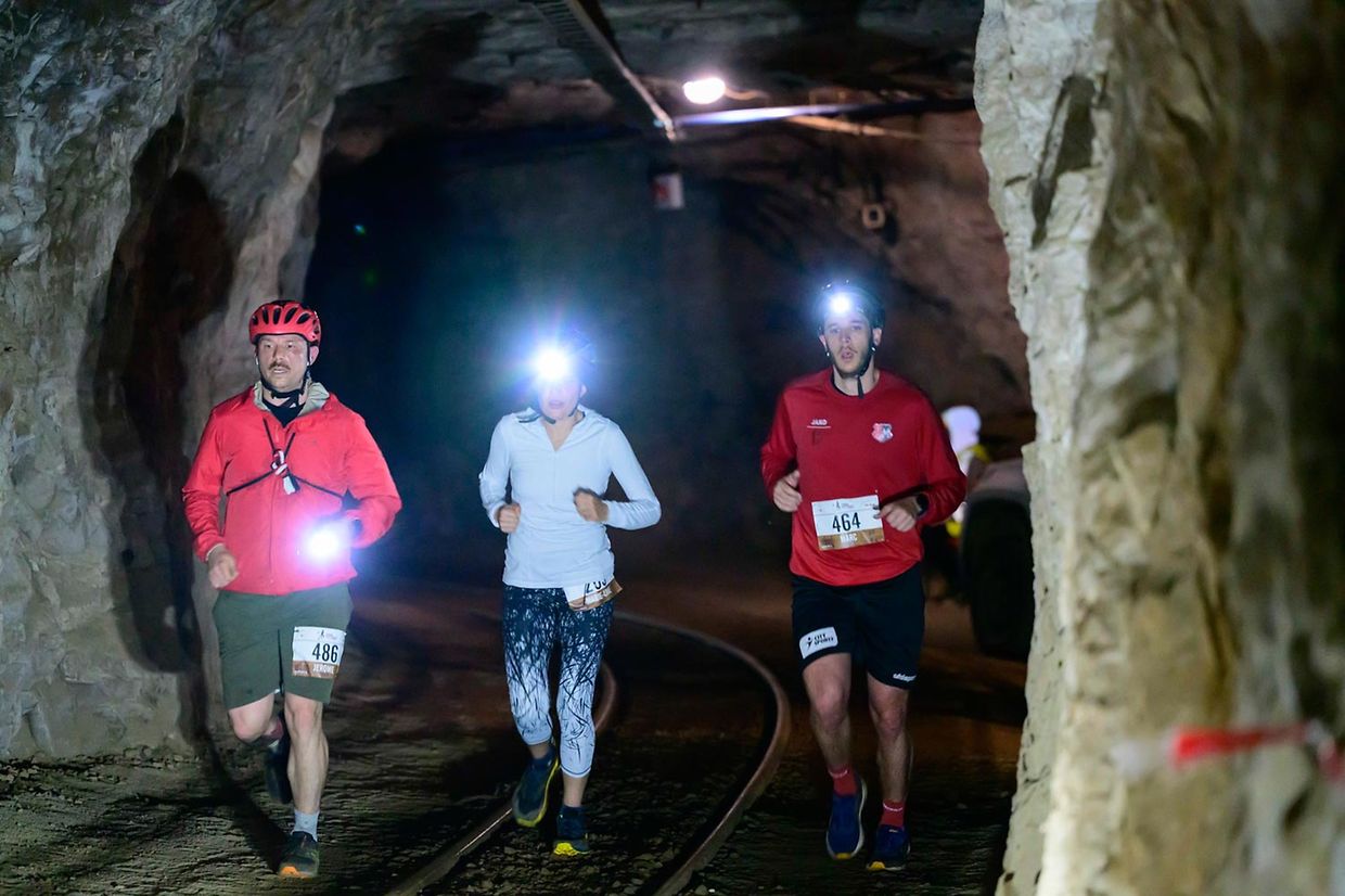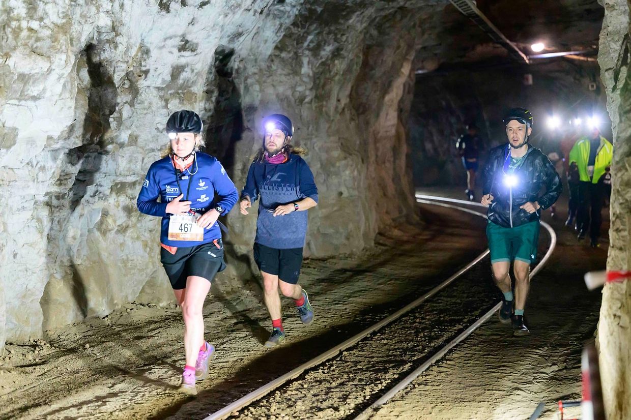 Dieser letzte Streckenabschnitt hatte es in mehrerer Hinsicht in sich. Nicht nur waren die Läufer zwischen den Gleisen unterwegs, auf denen die Besucher des nationalen Bergbaumuseums ansonsten nur mit der Grubenbahn einfahren. Aus Sicherheitsgründen mussten sie zudem einen Helm und eine Stirnlampe im Stollen tragen. Ungewohnt waren schließlich die Temperatur von nur noch 10 Grad Celsius und die hohe Luftfeuchtigkeit. Eine zusätzliche Herausforderung war in diesem Jahr erstmals das 1,5 Kilometer lange Teilstück durch den Steinbruch des Unternehmens Cimalux mit seinen 70 Höhenmeter, das dafür aber mit besonderen Ausblicken entschädigte.