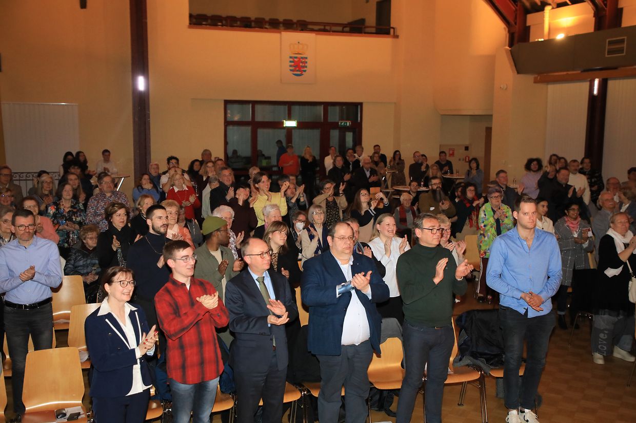 Bürgermeister Henri Haine (LSAP) zeigte sich von der neuen Dynamik des Cercle symphonique de Rumelange begeistert und beglückwünschte die Musiker sowie den neuen musikalischen Leiter für den erfolgreichen Konzertabend. Mit ermutigenden Worten an die Adresse des neuen Vorstandes sicherte er die Unterstützung der Stadt Rümelingen zu nachdem er auf die wechselvolle Geschichte des Vereins einging, der aus den 1907 grossangelegten Festivitäten anlässlich der Verleihung der Stadtrechte an die Gemeinde Rümelingen hervorgegangen ist. Das Gemeindeoberhaupt überreichte dann Vize-Präsident Sébastien Meyers die 1911 eingetragenen Statuten des Cercle symphonique de Rumelange. Dieser bedankte sich bei der Gemeindeverwaltung und der Kulturkommission für die wohlwollende Unterstützung sowie für den unermüdlichen Einsatz des Dirigenten und seiner Musiker. Schriftführerin Sonja-Scho-Pizzaferri überbrachte die Glückwünsche der abwesenden Ehrenpräsidentin Lydie Lorang, die Sidney Scho als ein “Geschenk des Himmels” für den Cercle symphonique bezeichnet.