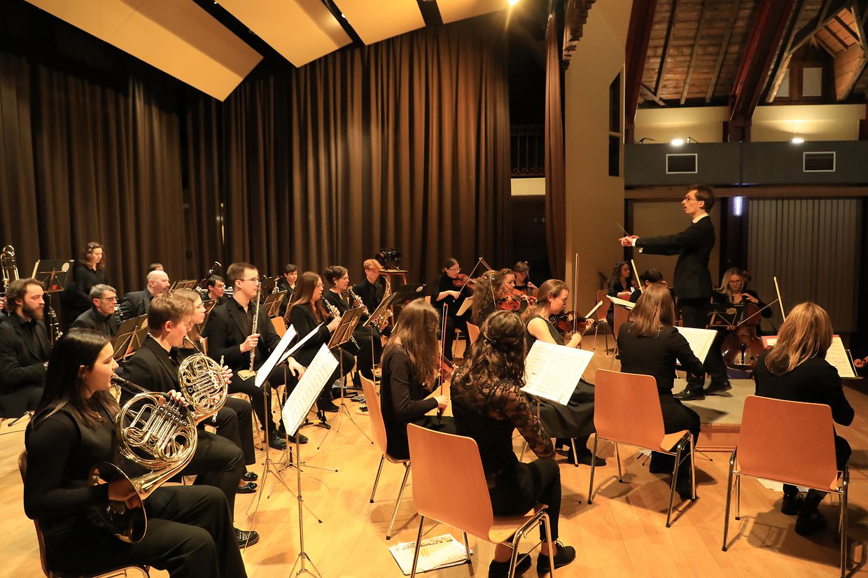 Als Sidney Scho im vergangenen Oktober die musikalische Leitung des Cercle symhonique de Rumelange übernahm, stand er ohne Musiker und ohne finanzielle Mittel da. Beseelt von der reichen Historie des 1910 gegründeten Orchesters und dem festen Willen den einst gewichtigen musikalischen Botschafter der Stadt der roten Felsen wiederzubeleben, gelang es dem 20-jährigen Musikstudent eine 30-köpfige Klangphalanx aufzubauen und mit viel Herzblut ein anspruchsvolles Programm innerhalb nur weniger Wochen einzustudieren. Am 25. Februar präsentierten die Orchestermusiker – alle Ameuteure oder semi-professionnelle Musiker, die ehrenamtlich im neuen Cercle symphonique de Rumelange spielen – rund um den gebürtigen Rümelinger Sidney Scho eine sinfonische Triple Entente bestehend aus deutschen, französischen und norwegischen Komponisten aus drei Jahrhunderten. Und sehr viele Musikfreunde waren gekommen, um dem musikalischen Abend, der unter dem Motto “(re-)naissance” stand, im Rümelinger Centre culturel beizuwohnen, so dass die vorgesehene Bestuhlung kurz vor Konzertbeginn um weitere Plätze erweitert werden musste.