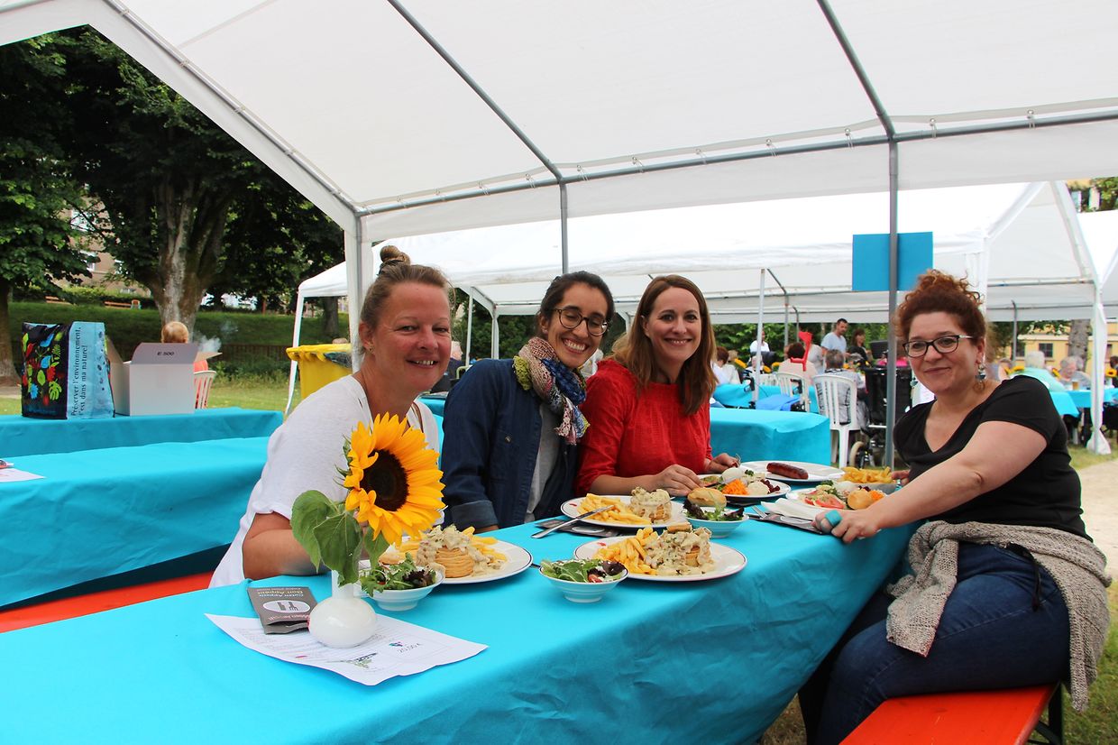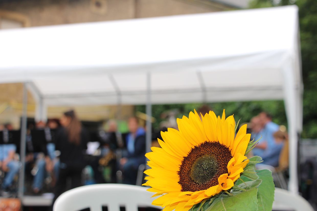 Rümelingen. Zahlreiche Bewohner, Familienangehörige, Mitarbeiter und Freunde des SERVIOR-Hauses « Roude Fiels » hatten sich am vergangenen Samstag im Park des Seniorenheimes zum traditionellen Sommerfest eingefunden. Die Mitglieder des Fördervereins « Minettsland » an der Seite des Personals des « Roude Fiels » hatten die Grünflächen unweit der Kaylbach in eine farbenfrohe Freifläche für ein Stelldichein der Generationen mit Gastronomie, Spiel, Tanz und Musik verwandelt. An den mit Sonnenblumen geschmückten Tischen konnten die großen und kleinen Gäste Leckereien vom Grill, einen frischen Salatteller oder die unumgängliche « Bouchée à la reine » genießen.