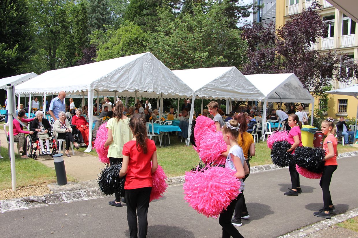 Musikalisch eingeläutet wurde das Sommerfest mit der 1891 gegründeten « Harmonie municipale Rumelange » unter der Leitung von Salomé Sanchez-Suska. Während des kurzweiligen Nachmittags traten neben dem Ein-Mann-Orchester Roland Kayser auch die Majoretten aus Dudelange sowie die « Enfants de l’Alzette » aus Bettemburg auf. Für die Kinder war eigens ein Spielparcours mit verschiedenen Stationen aufgebaut sowie ein Facepainting-Atelier. Für das leibliche Wohl sorgte den ganzen Nachmittag die Kochbrigade aus dem SERVIOR-Haus « Roude Fiels » zusammen mit den freiwilligen Helfern des Fördervereins.