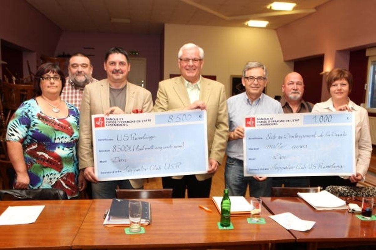 Laut Schatzmeiser Marcel Grassini ermöglicht der aktuelle Kassenstand dem Supporter-Club einen globalen Betrag von 13 000 Euro zu spenden. Der Löwenanteil von 8 500 Euro wurde USR-Präsident Gérard Jeitz anlässlich der Jahresversammlung überreicht. Dieser bedankte sich herzlich und kündigte ein ehrgeiziges Jugendprojekt an. So werden die Jugendmannschaften ab kommendem Herbst von einem hauptamtlichen Trainer geleitet. Dankesworte an André Theisen und seinen Vorstand gab es auch vom neuen Jugendkommission-Präsidenten Philippe Nathan, der sich zuversichtlich in Bezug auf die Zukunft der USR zeigte. Dr. Michel Nathan als Vertreter der Vereinigung „Aide au Développement de la Santé“ nahm einen Scheck über 1 000 Euro in Empfang.