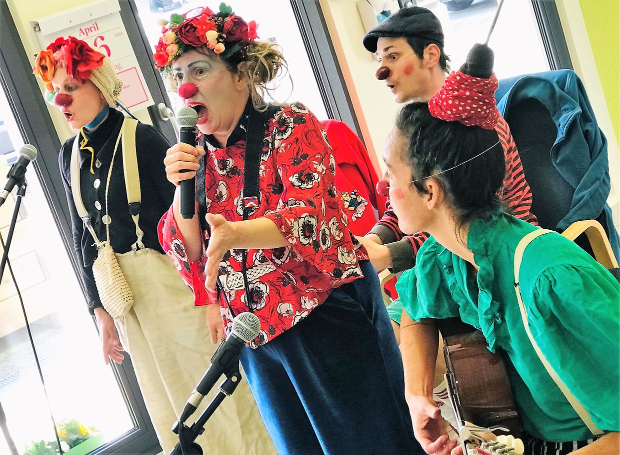 Mat Clownereien a bekannte lëtzebuergeschen, däitschen a franséische Lidder bréngen si och esou vill Freed an d’Strukturen an hëllefen a COVID-Zäiten de Leit e Laachen an d’Gesiicht ze zauberen.