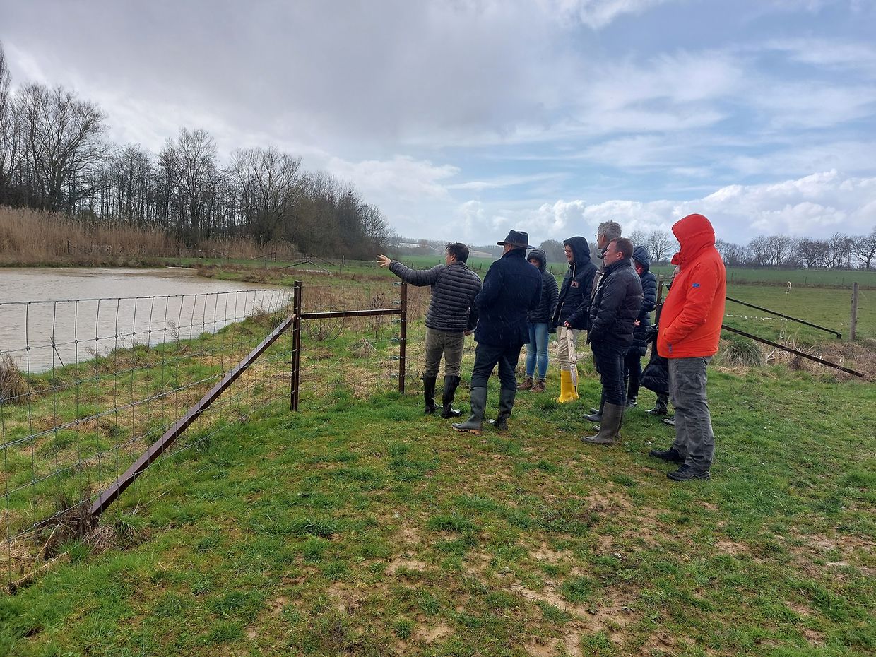 Auf diesem Hintergrund konnte auf einer Fläche von rund 25 Ar, welche von der gemeinnützigen Organisation APEMH zur Verfügung gestellt wurde, ein Weiher mit einer Wasserfläche von etwa 8,7 Ar ausgehoben werden. Der Überlauf des bestehenden Retentionsbeckens der APEMH-Gebäude wurde als naturnaher Wiesengraben umgestaltet und über eine Länge von 100 Meter ausgezäunt.