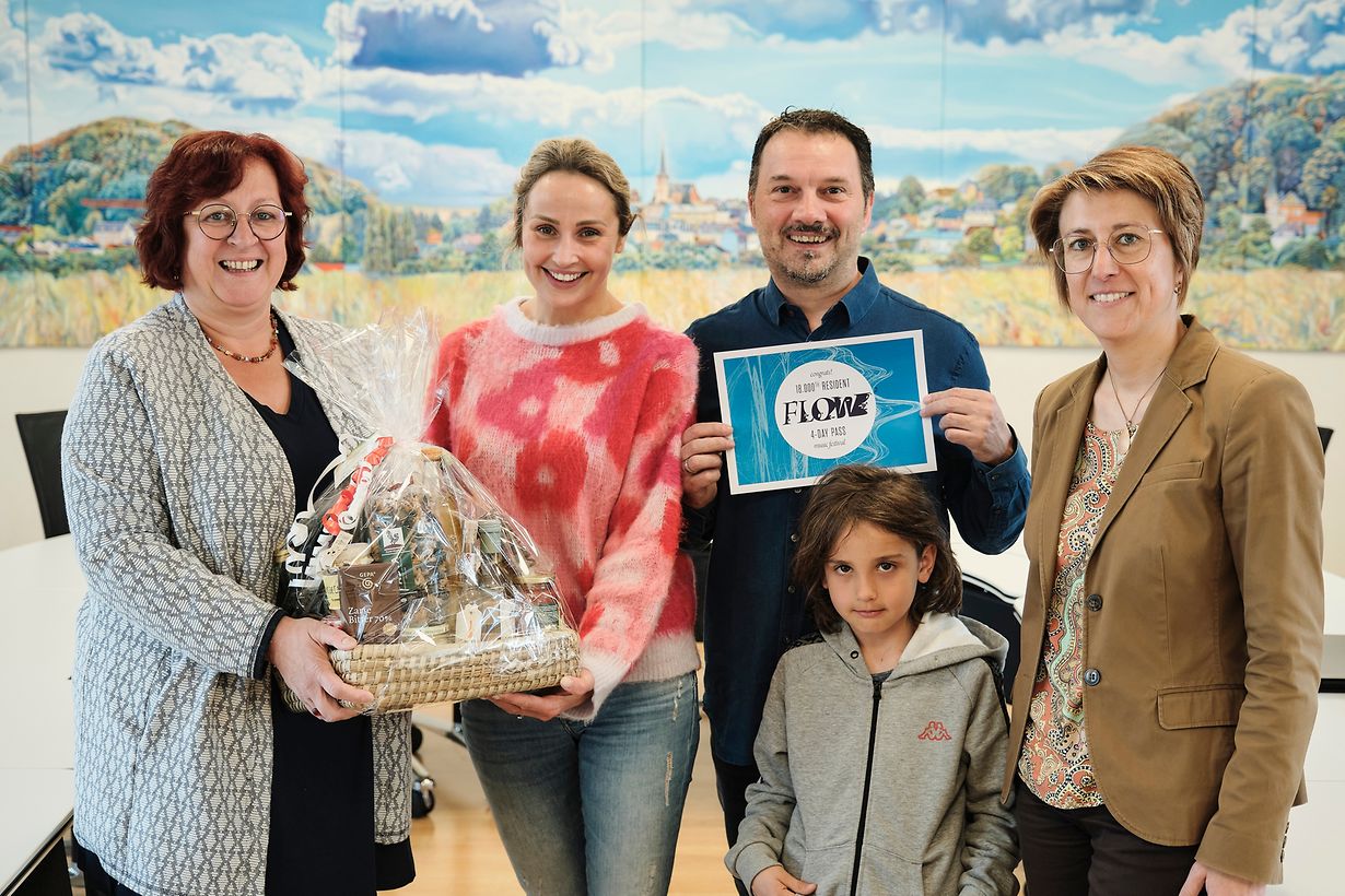 En mars 2022, la Commune de Sanem a franchi le cap des 18.000 habitants. Pour célébrer cette étape importante comme il se doit, le Collège des bourgmestre et échevin·e·s avait invité Madame Monika Kańczuga à la mairie. Lors de cette petite réception la nouvelle habitante de Sanem s'est vu offrir une corbeille de l'Eis Epicerie ainsi qu'un pass festival pour le Flow Music Festival qui aura lieu du 21 au 24 juillet au Parc Um Belval.