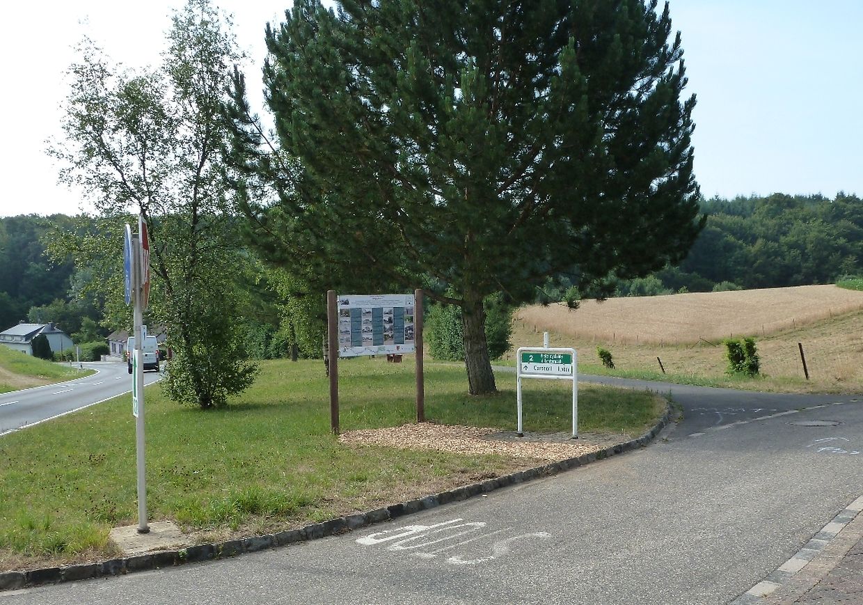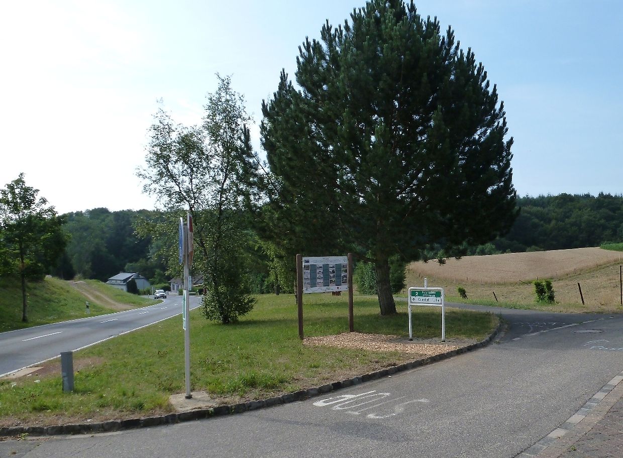 Kleine Veränderungen werden oft übersehen oder fallen kaum auf. Nicht so das Anbringen eines Mulchteppich bei der „Charly“ Informationstafel am früheren Bahnhofsplatz in Scheidgen, nahe dem Hôtel de la Station.