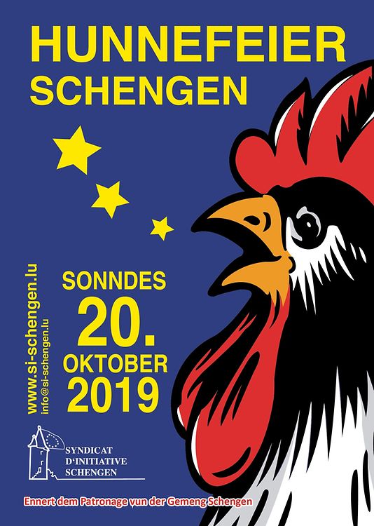 Am Sonntag, dem 20. Oktober 2019, organisiert das „Syndicat d’Initiative“ aus Schengen erneut die traditionelle „Hunnefeier“. Das abwechslungsreiche Programm sieht auch in diesem Jahr unter anderem einen Flohmarkt, Kinderflohmarkt und Kunsthandwerkermarkt vor. Doch auch die Ausstellung historischer Traktoren und Acker-Schlepper finden beim Publikum immer großen Anklang. Im vergangenen Jahr fanden über 60 Teilnehmer den Weg nach Schengen und stellten ihre wahrhaftig exemplarisch restaurierten landwirtschaftlichen Traktoren aus. Nachmittags steht die „große Ausfahrt“ auf dem Programm. Kunsthandwerker, Inhaber von solchen Traktoren, Ackerschlepper oder sonstiger Maschinen, Weinbaumaschinen sowie Floh- und Trödelmarktaussteller können ihre diesjährige Teilnahme durch das Ausfüllen des Online-Formulars unter www.si-schengen.lu beim Interessenverein anmelden.