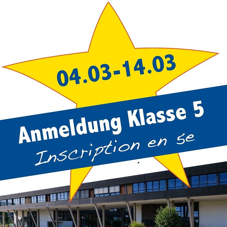 Die Anmeldungen zur Klassenstufe 5 des Schengen-Lyzeums können in der Zeit vom 04. März bis 14. März 2023 wochentags zwischen 8:00 und 14:00 Uhr in den Geschäftsräumen der Schule vorgenommen werden. Auch samstags, dem 04. und 11 März 2023, ist zwischen 9:00 und 13:00 Uhr eine Anmeldung möglich.