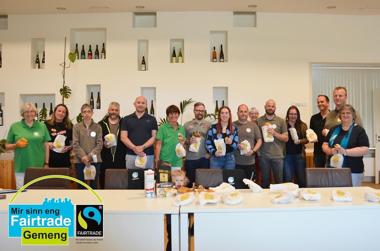 Am Kader vun der Fairtradewoch huet de Fairtradegrupp vun der Gemeng Schengen all de Mataarbechter vun der Gemeng souwéi dem Personal vun der Maison Relais an de Schoulen eng Schockelasrull an e Schokelasmuffin, bestallt beim Klouschter vu Yolande Coop, zum Frühstück iwwerreecht.
