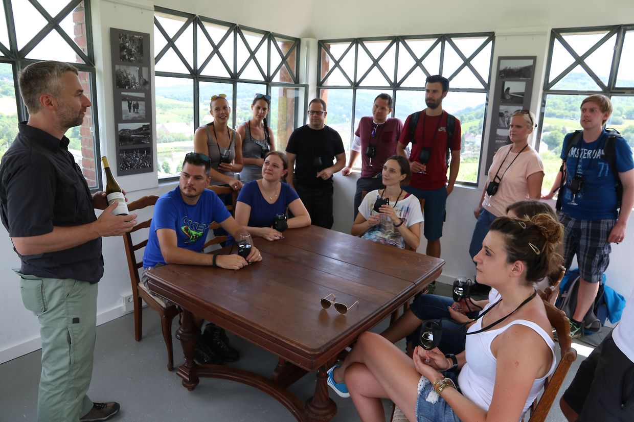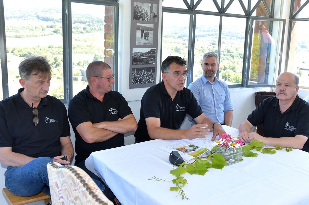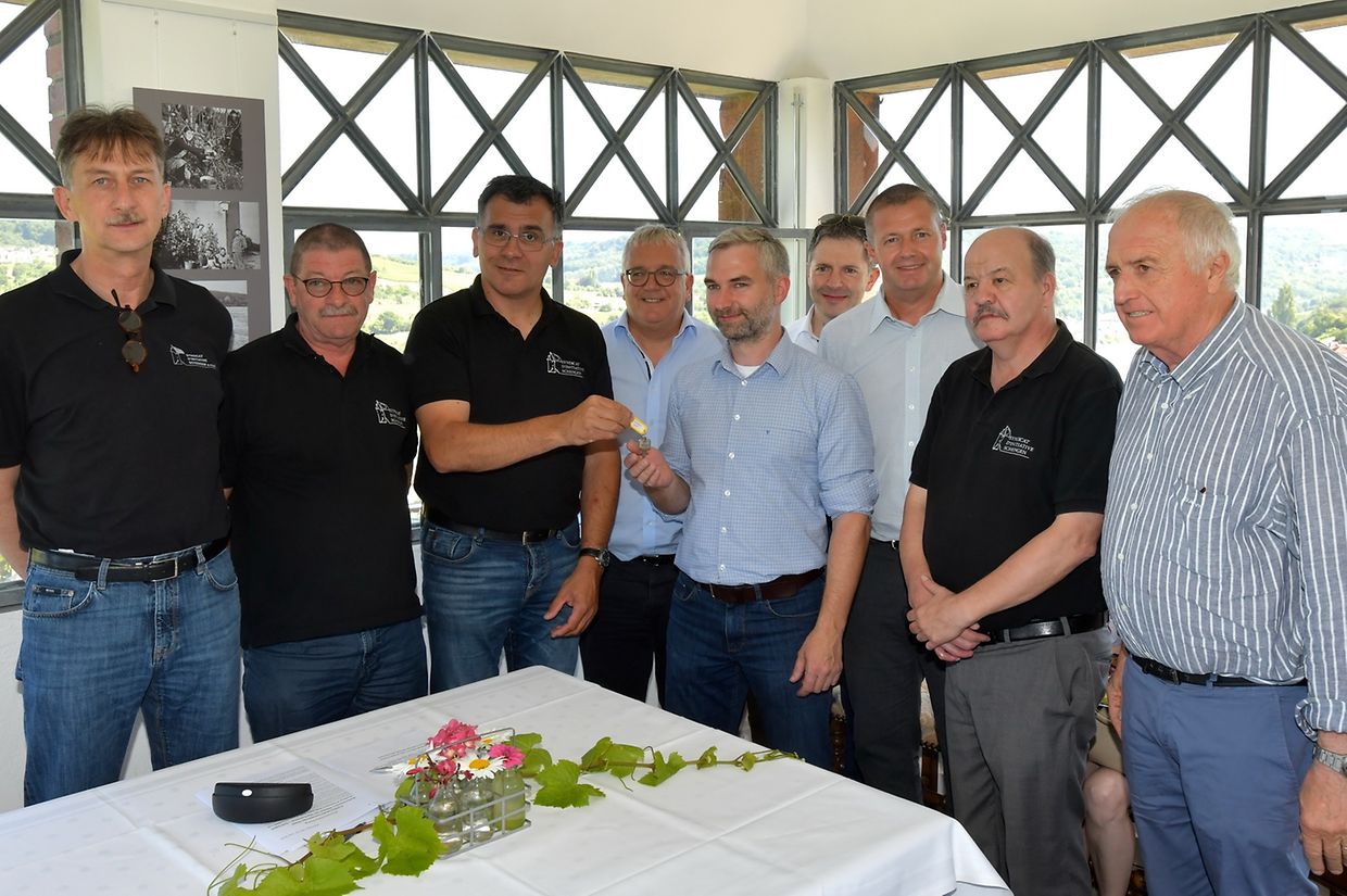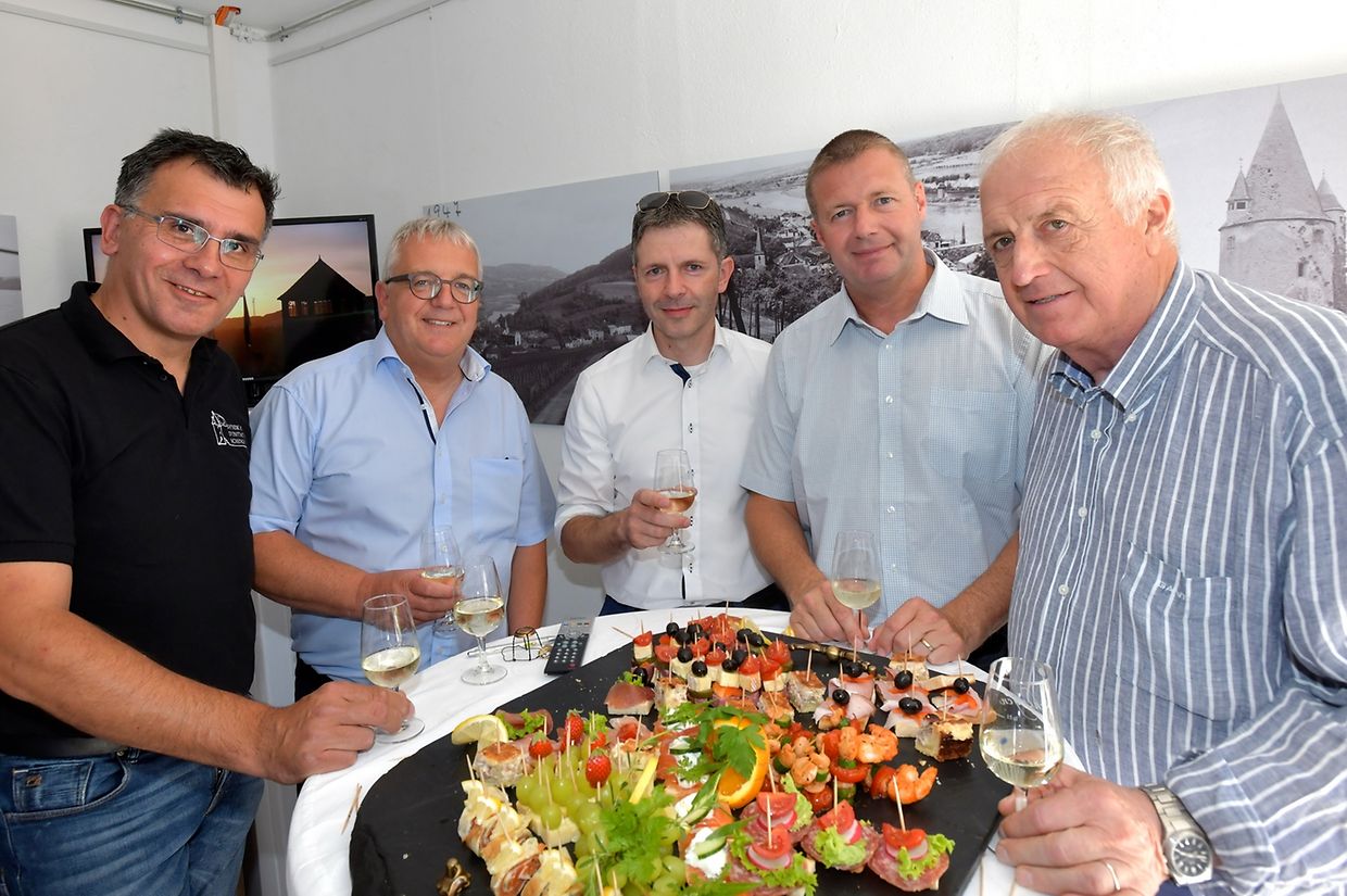 Neben der bereits bestehenden Kooperation mit den Winzern aus der Gemeinde Schengen – durch den Verkauf von Wein und Crémant auf dem monatlichen Frischwarenmarkt und der Organisation von gelegentlichen Weinproben hat das das „Syndicat d’Initiative“ aus Schengen seine Zusammenarbeit mit Winzern und Restaurateuren ausgebaut. Die Möglichkeiten das „Miselerland“ und die Region im Dreiländereck zu entdecken, ist gleich um drei neue Initiativen erweitert worden. Im Rahmen der Förderung des regionalen Tourismus, insbesondere des Önotourismus wird der oberhalb der europäischen Winzerortschaft Schengen gelegene Markusturm, mit Blick über das Dreiländereck, zukünftig als Ziel für Weinwanderungen und stimmungsvoller Ort für Weinproben angeboten. Als dritte Initiative – einer Premiere im Miselerland - ist der Markusturm für romantische Dinner zu zweit buchbar. Der in Schengen inmitten der Weinberge gelegene Markusturm bietet hierfür die perfekte Kulisse im schönen Dreiländereck. In grenzüberschreitender Zusammenarbeit wurde sich mit dem Inhaber des Hotel-Restaurant „Maimühle“ aus Perl, Frederik Theis, in Zukunft enger zusammenarbeiten. Zur offiziellen Vorstellung der drei neuen Initiativen hatten sich neben den Bürgermeister aus Schengen und Perl, Michel Gloden und Ralf Uhlenbruch auch der Präsident des ORT, Gilles Estgen und der Präsident der Schengen asbl, Roger Weber, im Markusturm eingefunden. Vorgestellt wurde auch ein neuer Promotionsfilm „Markusturm“ vorgestellt welcher u.a. auf den sozialen Medien zu sehen sein wird. „Weintouristen suchen das Besondere und möchten etwas Einzigartiges erleben“, so der Präsident des Syndicat d’Initiative Schengen, Marc Schoentgen. Es gelte das vorhandene touristische Potenzial zu erkennen, zu nutzen und auszubauen. „Wegen stetiger Nachfrage und grosser Beliebtheit der Weinwanderungen und Weinproben im oder bis zum Markusturm sind wir froh mit Frederik Theis, einen starken, erfahrenen und professionellern Partner gefunden zu haben“ so Marc Schoentgen. Weintouristen sind nicht nur neugierig, sondern suchen auch das Besondere und sind anspruchsvoll. „Beim romantischen Dinner im Markusturm möchten wir den Gästen dieses besonderes Erlebnis bieten“, so Frederik Theis. Dabei wird sie der Blick über das Dreiländereck faszinieren und der Ausflug an die Mosel wird zu einem unvergesslichen Erlebnis. „Das Interesse an der Kultur und am kulinarischen Angebot ist gross. Weintouristen sind nicht nur Kunden, sondern auch Botschafter der Region“, so Fredrik Theis. Präsident Marc Schoentgen hob hervor, dass bei Touristen, wie auch bei der einheimischen Bevölkerung, Weinproben im Weinberg weiterhin hoch im Kurs stehen. Mit Wein verbindet man allgemein Geselligkeit und schöne, gemütliche Stunden. „Diese kann man nun im restaurierten Markusturm erleben“, so Marc Schoentgen.