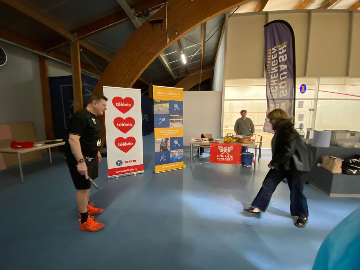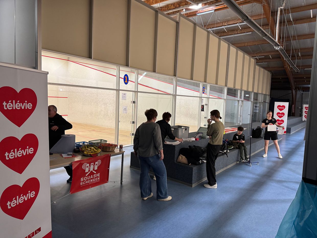 Le samedi 8 mars 2025, un événement spécial de squash au profit du Télévie a eu lieu au CK Sportcenter Kockelscheuer. Environ 30 participants se sont réunis pour jouer pour la bonne cause et ont pu bénéficier de l'expertise de nos entraîneurs bénévoles qui, avec passion, ont transmis la joie du jeu, suscité la motivation et expliqué les fondamentaux du squash à tous les participants.