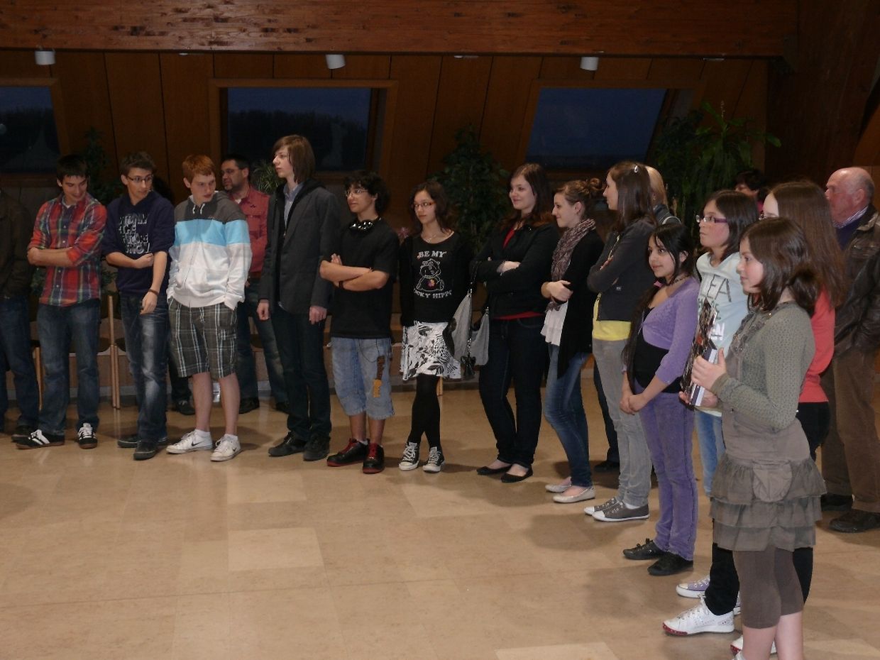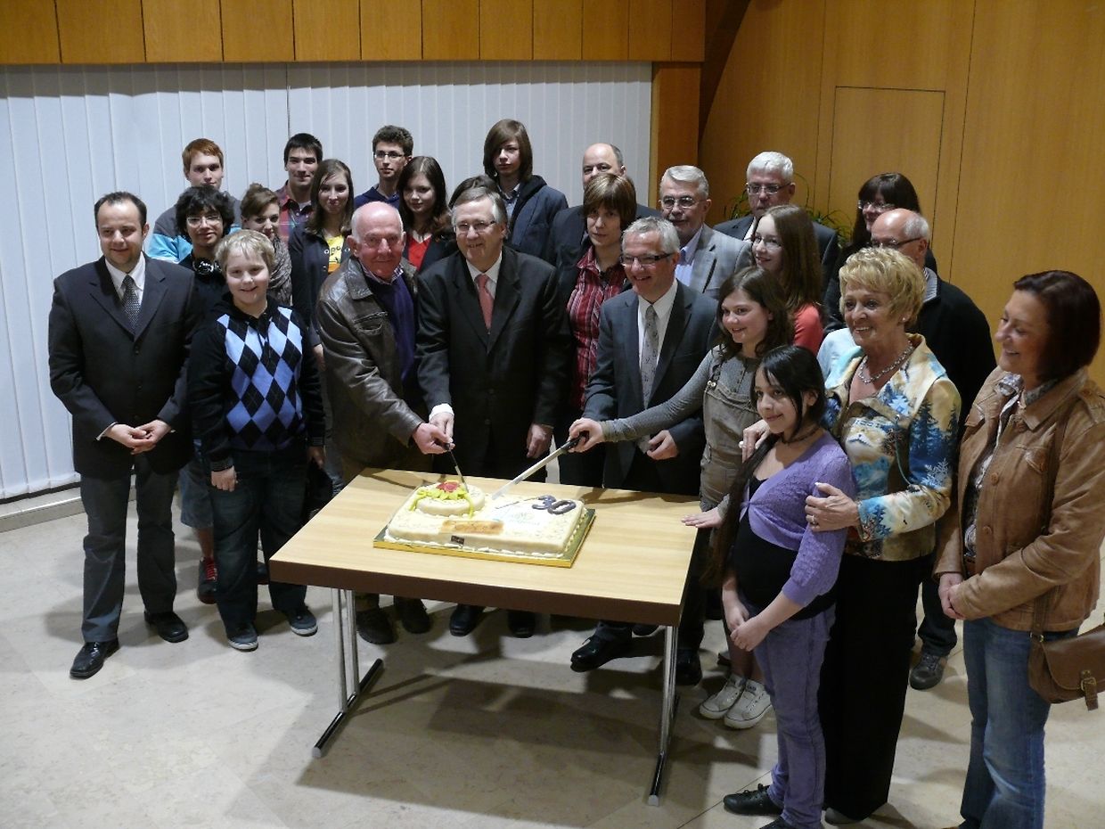 Selbstverständlich hoben sie die Verdienste der früheren und aktuellen Dirigenten hervor, ohne aber die wichtigsten Akteure, nämliche die jugendlichen Musiker, zu vergessen. Nach dem Verteilen des Geburtstagskuchens wurde beim gemütlichen Plausch mache Anekdote vergangener Tage hervorgekramt. Ein Ehrenwein/saft schloss die angenehme Feier ab.