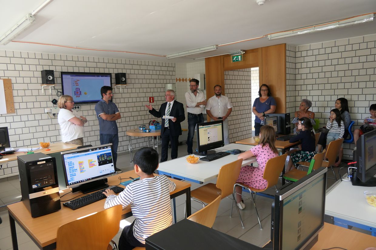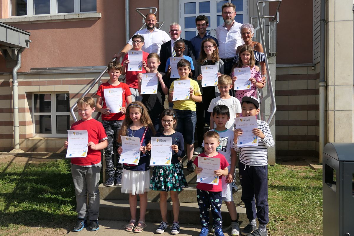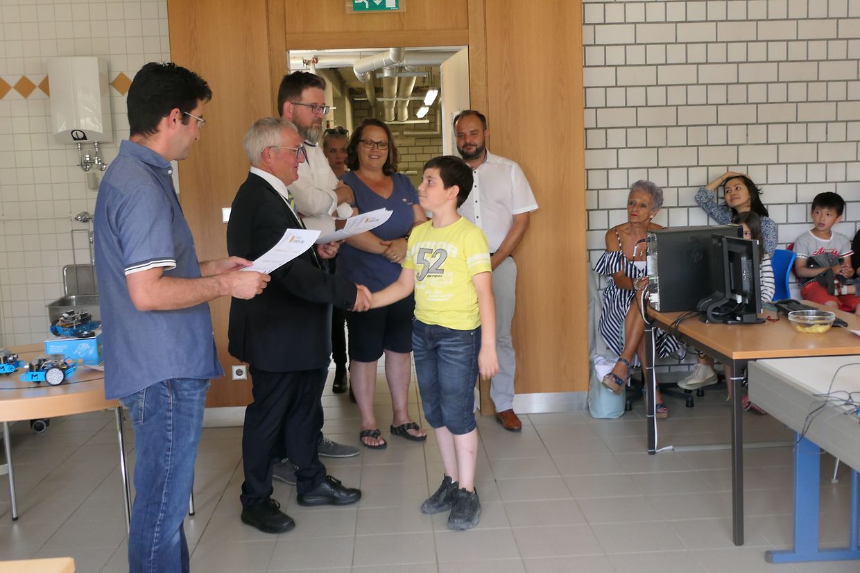 Wei all Joer haaten dei Gemengenverantwortlech op dei offiziell Diplomiwwerrechung vum Kur “Informatique à l’école” agelueden. Desen Informatikcours ënnert der Leedung vum Claudio Mourato huet sech un all Kand aus dem Cycle 3 a 4 adresséiert. Wärend dem Schouljoer 2018/19 huet sech alles ronderem “Robotik” (Roboter programméieren) gedréint. 19 kleng Informatiker hun daat ganz Joer gewerkelt, gebastelt an ausprobéiert fir hiren Elteren an den Gemengenresponsabelen wärend enger klenger Virféierung ze weisen waat sie alles an engem Joer geléiert hun. Als kleng Unerkennung fir hirt Engagement an hir Ausdauer hun sie den 9. Juli aus den Hänn vum Buergermeeschter en Diplom kritt.