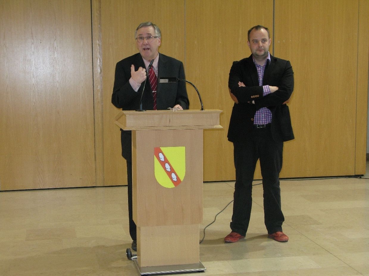 No der Schoul huet de Buergermeeschter vu Schëffleng, de Roland Schreiner, zesumme mam Carlo Feiereisen, 2. Schäffen, sech et net huele gelooss fir eis Comenius-Partner op der Gemeng ze empfänken.