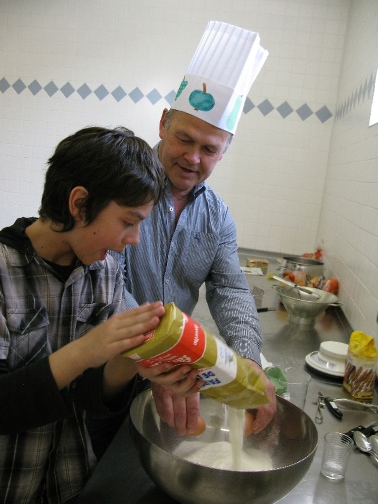 Frësch gestärkt huet sech d’Comeniuséquipe dunn a 4 Atelieren agedeelt: d’hollännesch Enseignanten hu mat hirem Kannergrupp e witzegt hollännescht Lidd astudéiert. Di däitsch Enseignanten hunn eis Kanner mat engem flotten däitsche Lidd inclusive Bewegungen begeeschtert. D’portugiesech Léierinnen hu mat eise Schüler e portugiesecht Lidd geübt an d’griechesch Enseignanten hunn hirem Grupp e griescheschen Danz méi no bruecht. An der Kichen huet de Rescht vun den Enseignanten mat de Kanner zesummen a 4 Statiounen kleng Snacken an Desserten, aus deene verschiddene Comenius-Länner, firbreed.