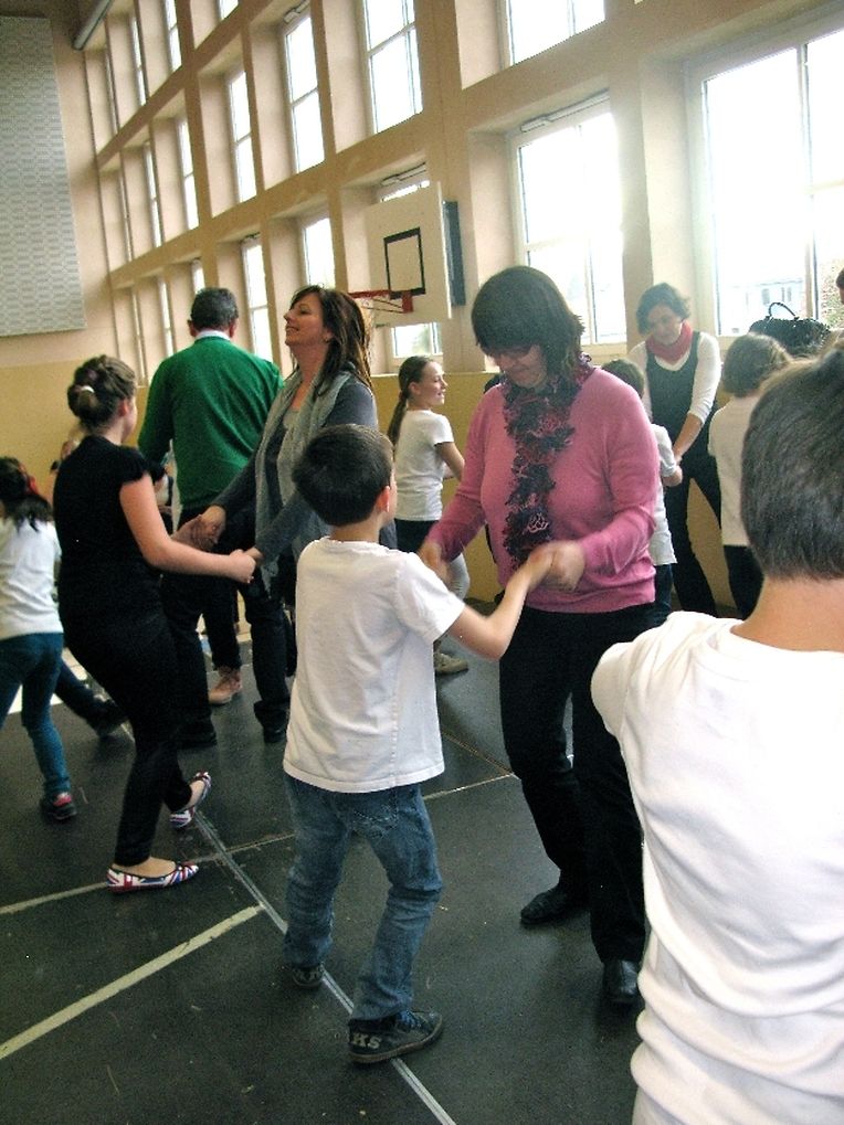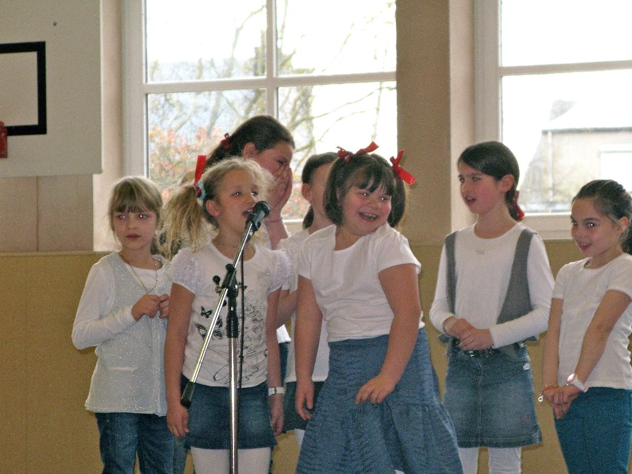 Um 18h00 war et dunn endlech souwäit: D’Opféirung vun eisem Multikulti-Programm vun a mat de Kanner konnt ufänken. Ganz vill Eltren haten sech am Turnsall afonnt, fir hir Kanner bei hirem Optrëtt z’ënnerstëtzen. A Présence vun eiser Schoulinspektesch, der Madame Jeanne Letsch, an dem Schoulschäffen, dem Marc Spautz gouf den Eltren en ofwiesslungsräichen an animéierten Programm gebueden mat Danz, Gesang a Sketcher. Natierlech gouf eis Soirée vun de Kanner selwer moderéiert an dat op englesch, portugiesesch an däitsch. Eenzel Kanner hunn et sech net huele gelooss, fir souguer verschidden Moderatiounen op griechesch ze man. Déi puer Säz goufe freides äiffreg mat de griecheschen Schoulmeeschtren geübt.