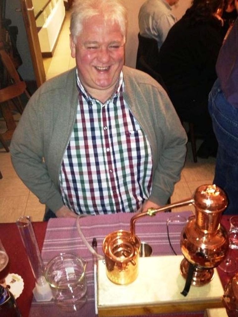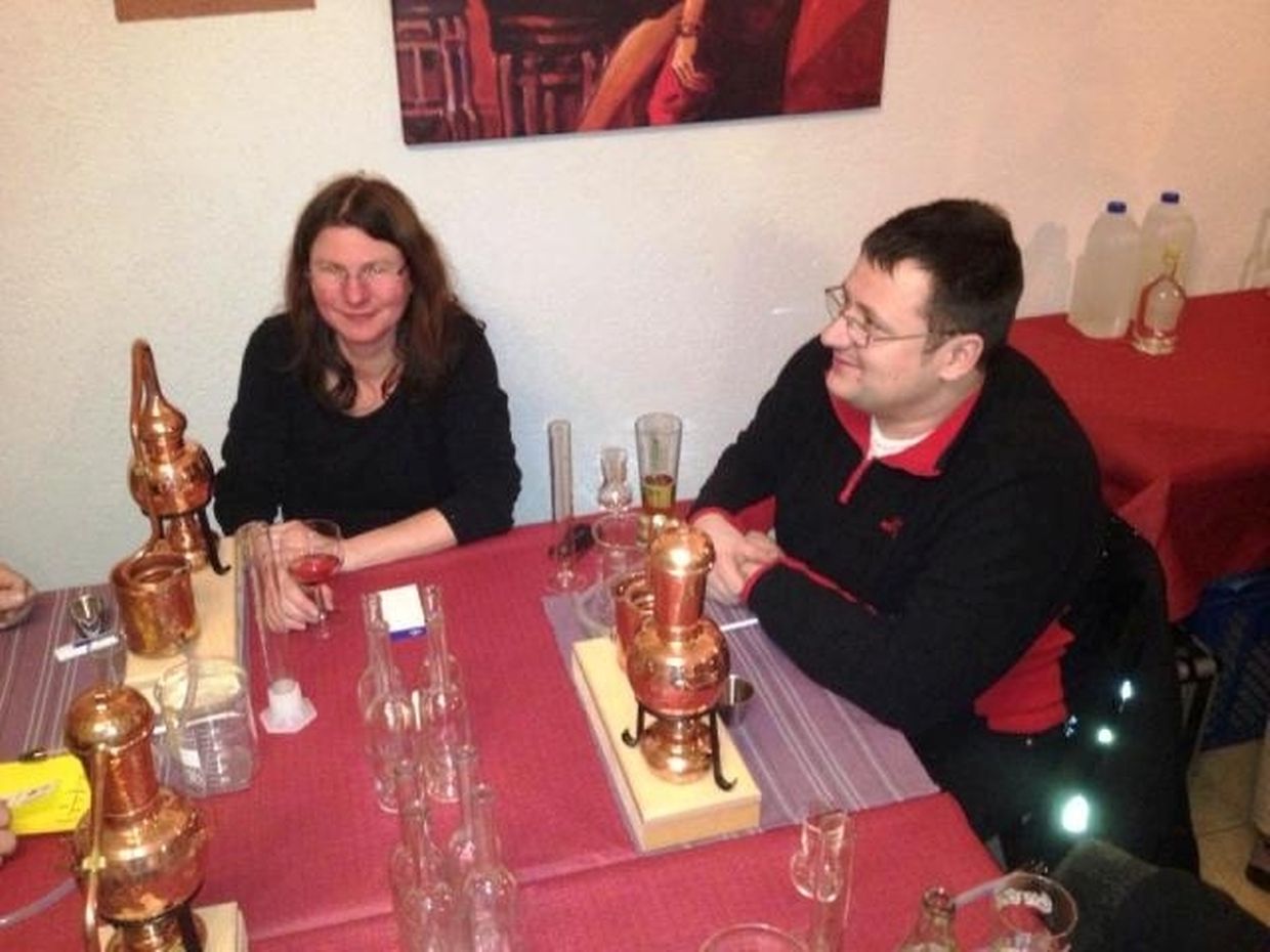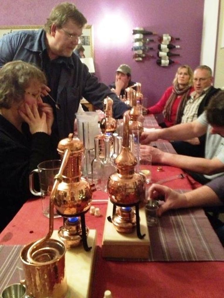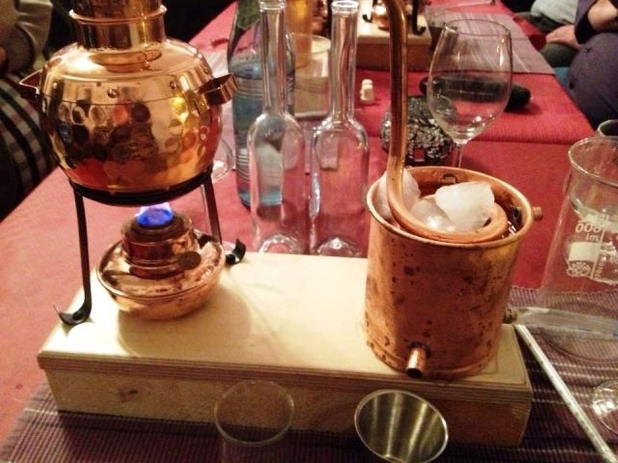 Dass dieses Thema viel Interesse erweckt, zeigt nicht zu Letzt die Tatsache, dass das Seminar ausgebucht war, sondern auch das Interesse der Medien. Nach einem guten Abendessen im Café de l'Avenue, konnte man sich gestärkt dem geistvollen Thema widmen. Brennmeister Kai Hofstetter erklärte den anwesenden Teilnehmern in lustiger und lockerer Art und Weise die Geschichte des Brennens, und erklärte fachkundig die Praxis. Mit kleinen Destillen konnte man dann auch sogleich eigene praktische Erfahrung machen.