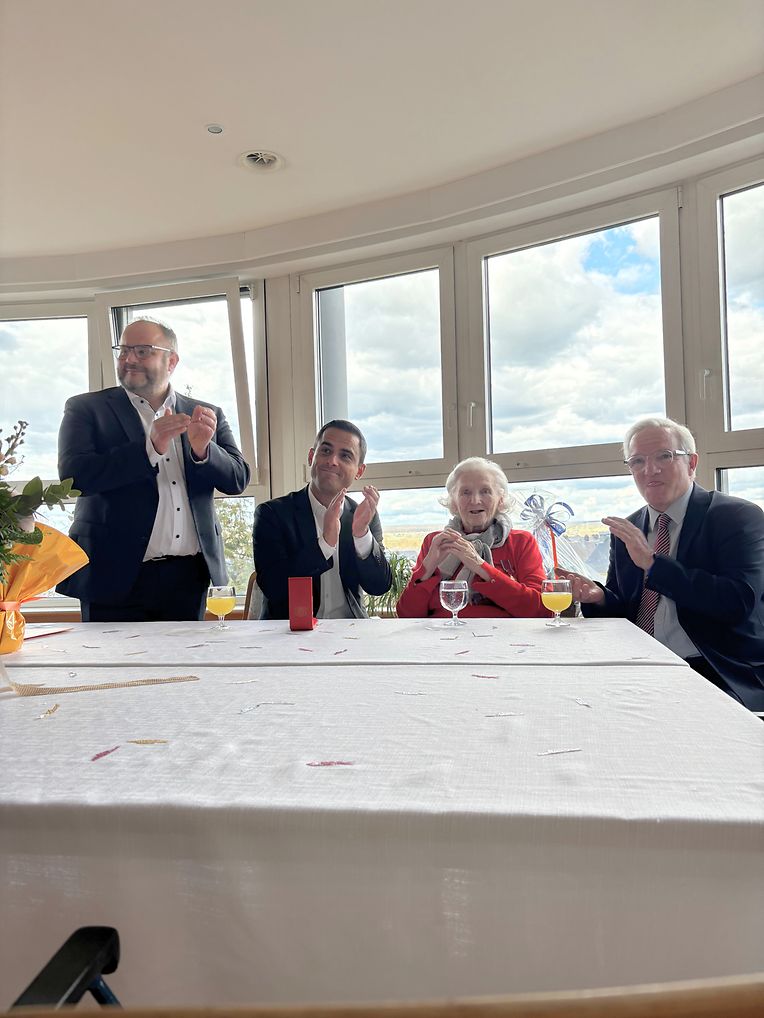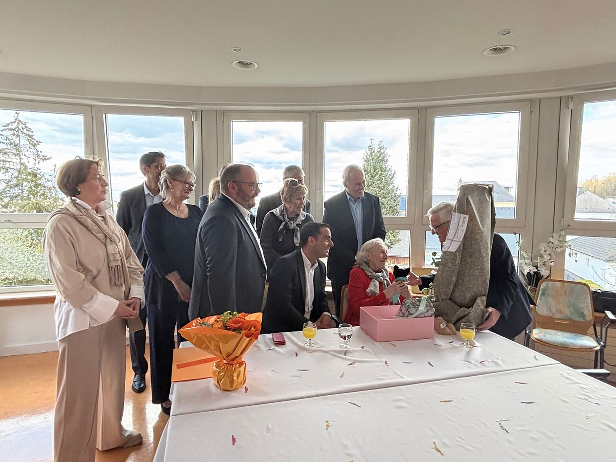 D’Marie-Françoise Delrez, säit hirer Kandheet Mayou genannt, ass de 24. Mäerz 1925 zu Verviers an der Belsch gebuer. Fir hiren 100. Gebuertsdag hunn sech d’Gemeng Schëffleng, de Familljeminister, d’Seniorekommissioun, e puer Verwandten a Mataarbechter·innen vum Fleegeheem „Am Schmëttbësch“ fir dës feierlech Occasioun versammelt.