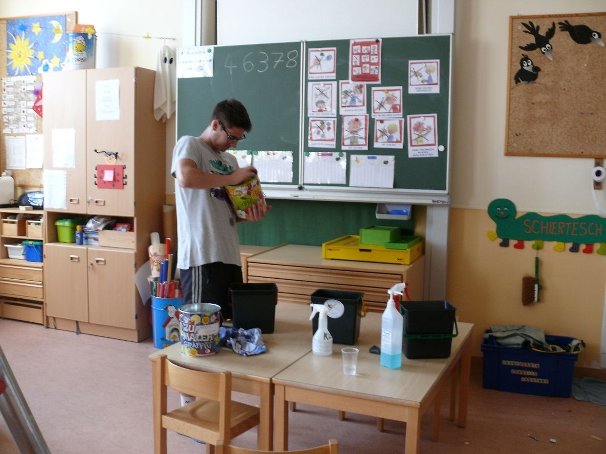 Sie hëllefen ënneranerem an de Schoulen, wou all Joer während der grousser Vakanz vill Raum- a Botzaarbechten ufaalen.