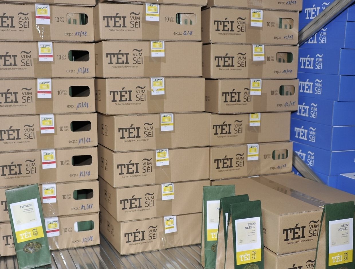 Schon seit dieser Zeit setzten wir einer der Leitsätze des späteren Naturparks Uewersauer: die Aufwertung lokaler Produkte ist die Voraussetzung für den Erhalt eines lebendigen ländlichen Raumes konsequent in Taten um. Der Anbau erfolgt nach Richtlinien in Bezug auf Natur- und Umweltschutz. Somit erfolgt der Anbau ohne Einsatz von chemischen Dünger- und Pflanzenschutzmittel. Die Richtlinien begreifen die Beachtung der allgemeinen Kulturpflege. Die sorgfältige Aufbereitung der frisch geernteten Pflanzen erfolgt in der Teemanufaktur (Téifabrik) ab 2016 in Schleif. (vorher in Winseler) Viele Arbeitsgänge durchlaufen hier unter ständiger Überwachung: schneiden, trocknen, sortieren, prüfen, dreschen, kennzeichnen und lagern. Die Kräuter werden bei niedrigen Temperaturen und in relativ kurzer Zeit schonend in modernen teschnisch-thermischen Anlagen getrocknet. So verbleiben die wichtigen Inhaltstoffe, und die natürliche Farbe, was schliesslich ein qualitativ hochwertiges "Téi vum Séi" Endprodukt garantiert. Dank unserem Motto: --Beste Qualität zum fairen und vor allem bestmöglichen Preis-- erfreut sich unsere Verkaufsware einer stets wachsenden Nachfrage. Unsere Produkte werden weder begast noch bestrahlt. Keine Zusatzstoffe, keine Aroma- oder Konservierungsstoffe kommen zum Einsatz. Nur so bleibt der pure Geschmack von Kräutern, Früchten und Gewürzen vollständig und unverfälscht erhalten. Die "Téi vum Séi" Produkte werden in loser Form als auch in Teebeutel angeboten.