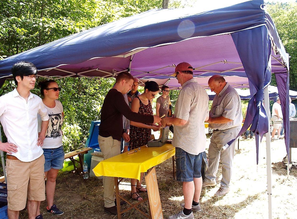 Nach der Messe sorgten die « Frënn vun der Schlënner » mit frischen Getränken, die in der «Schlënnerbaach » gekühlt wurden, für ein gemütliches Zusammensein. (http://www.schlenner.org).