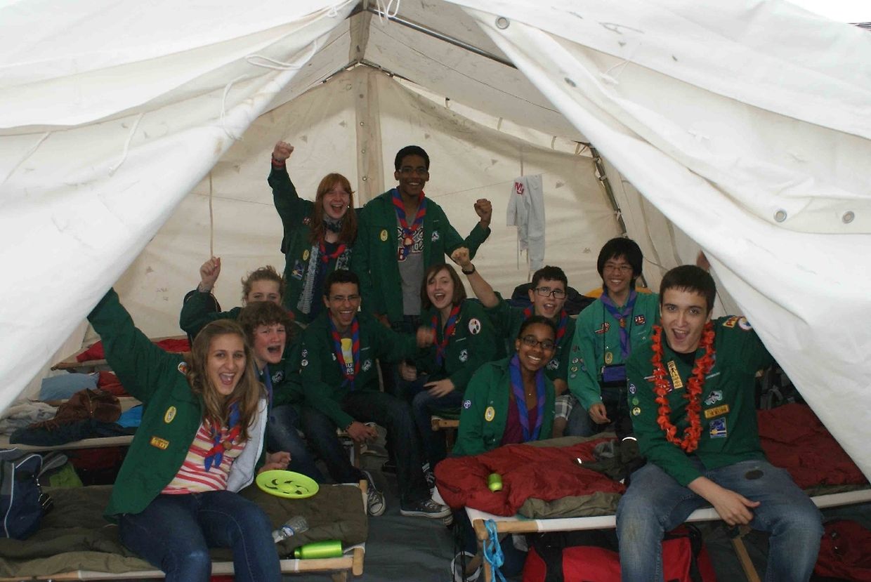 Un dësem Camp huelen awer net nëmmen Jugendpompjeeën deel, mä ganz nom Mill Majerus, senger Idee Jugendlecher vu verschiddenen Sparten aus eiser Gesellschaft. 38 Jonker hunn hier Zelter zu Schous niewent dem Veräinshaus opgeriicht, fir 4 Deeg zesummen z'erliewen. Derbäi sinn, d'Angelduerfer Jugendpompjeeën, Flüchtlingen vun der Caritas, Lëtzebuerger Guiden a Scouten vun Esch-Grenz, Jonker vun Dräibuer an aus der Angsber Primärschoul, esouwei Jugendpompjeeën aus der Gemeng Fëschbech.