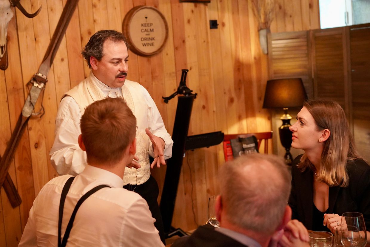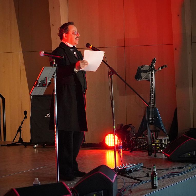 Die Begeisterung für Edgar Allan Poe war damit jedoch noch nicht vorbei. Am Freitag bot die Veranstaltung "Dine with Poe!" eine weitere Gelegenheit, Wissinger in seiner Rolle als Poe zu erleben. Dies in Form eines exklusiven Dinners, bei dem die Beteiligten Fragen zu Poes Leben und Werk stellen konnten. Ein akustisches Konzert der Band ShadoWhisperS und mehrere Rezitationen von Poes bekanntesten Gedichten durch Wissinger rundeten den Abend ab.