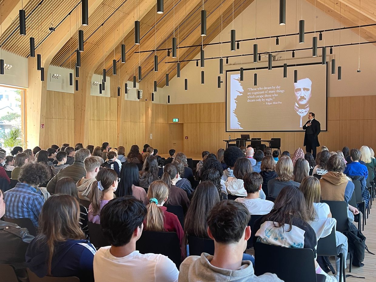 Während des Vormittags nahmen die 140 Schüler an lebhaften Diskussionen und interaktiven Aktivitäten teil, die sich sowohl um das Werk Edgar Allan Poes als auch um das wichtige Thema mentale Gesundheit drehten. Gemeinsam erarbeiteten sie Konzepte, wie man Schüler und Eltern für psychische Gesundheit sensibilisieren kann.