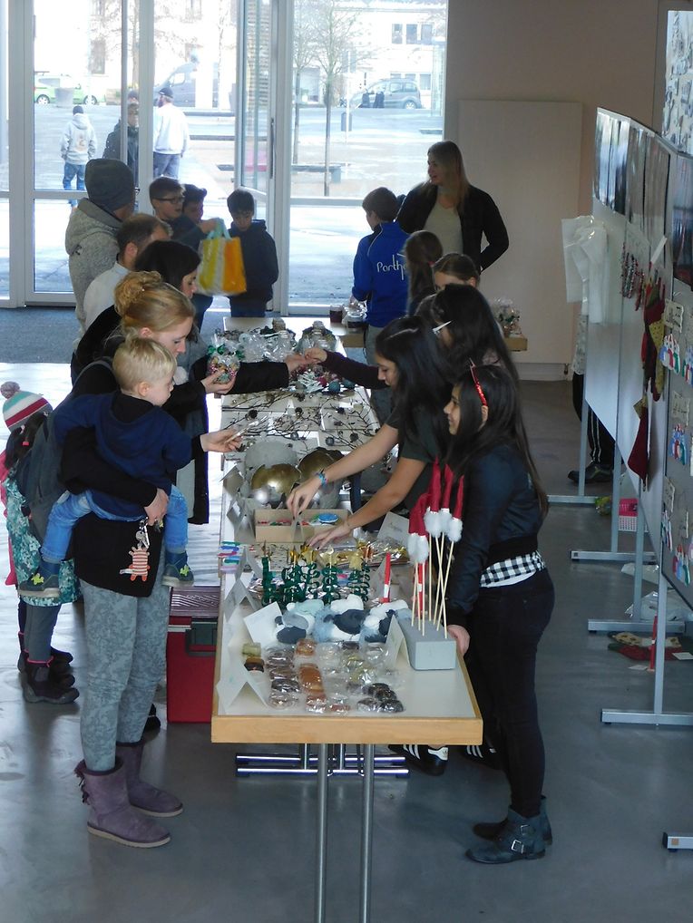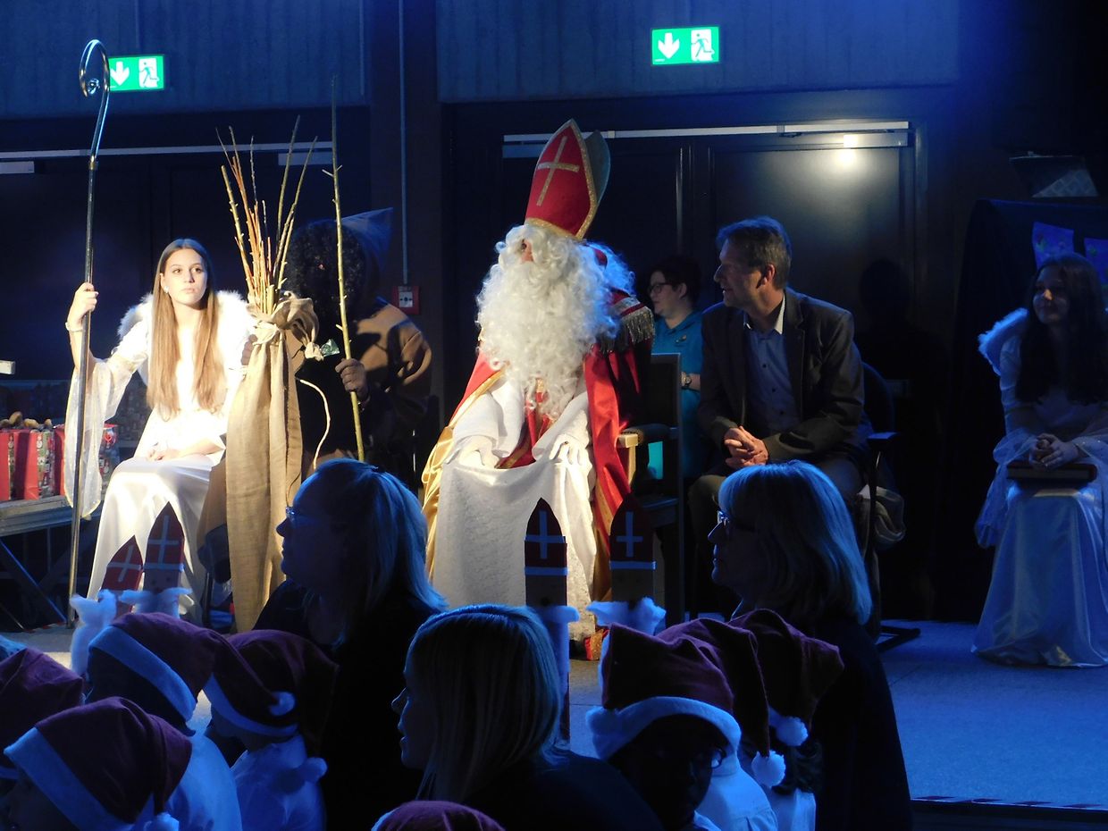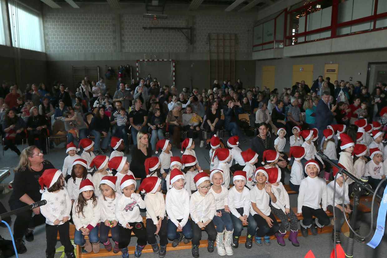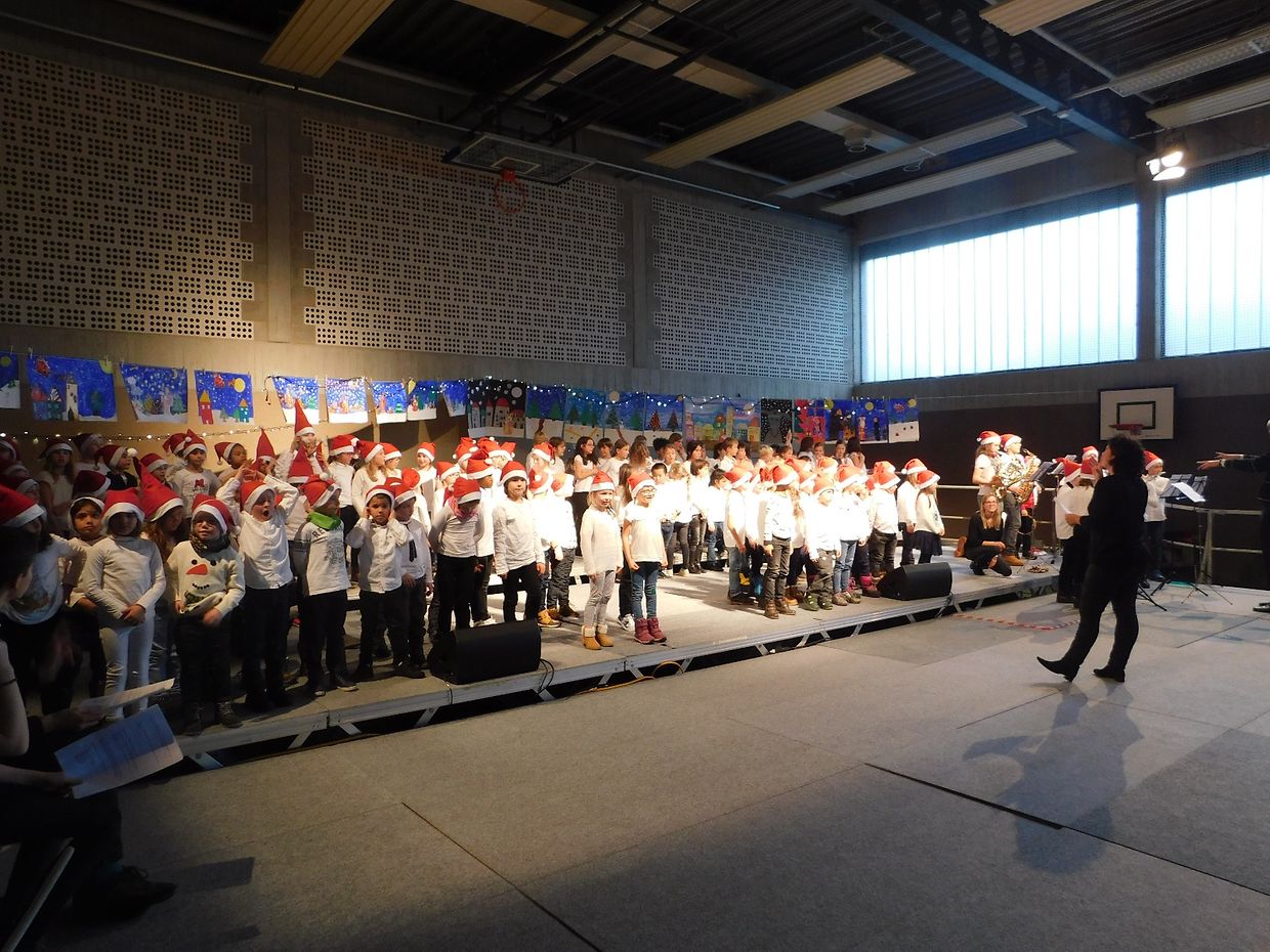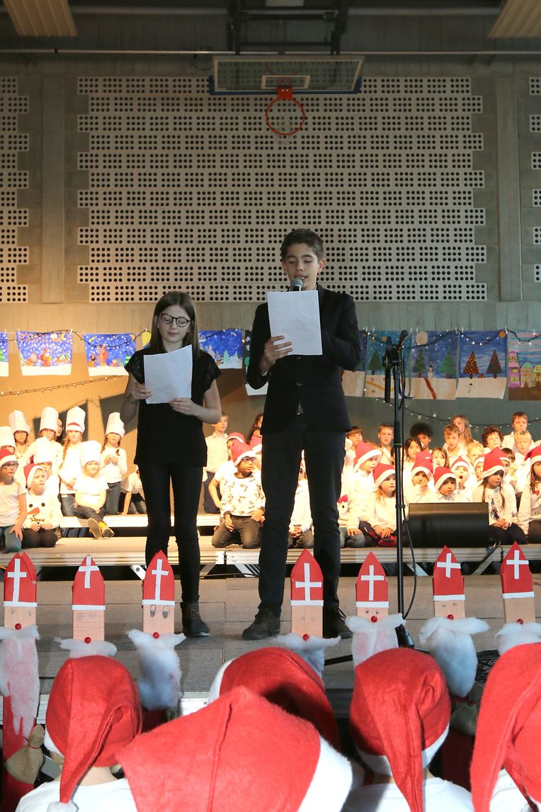 Net nëmmen déi 215 Kanner op der Bühn, mee och d’Schüler aus dem Cycle 3 & 4, déi op hiren traditionnellen Niklosmaart mat Kaffisstuff invitéiert hunn, hu fir eng gutt Stëmmung am Gebai gesuergt.