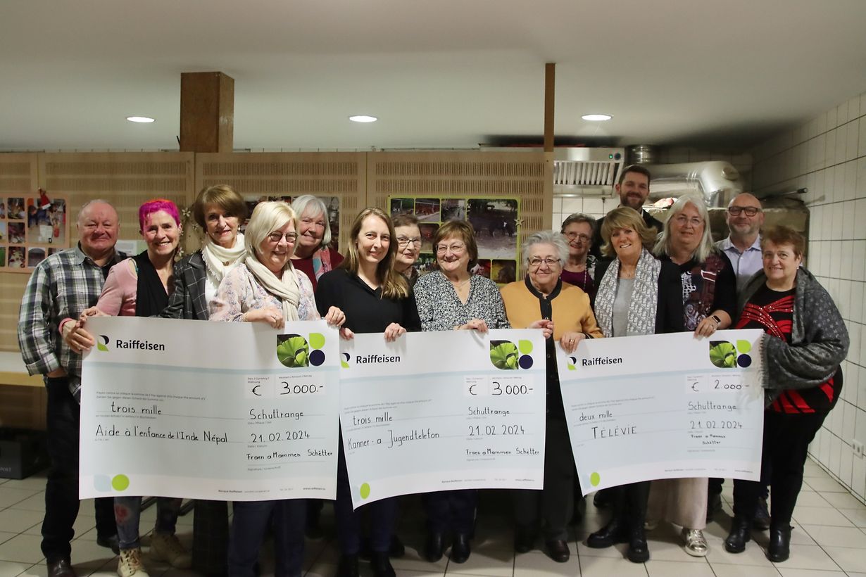 Déi vill Méi war net ouni Resultat. Sou konnten d’ Fraen a Mammen vu Schëtter och dëst Joer dräi Schecken fir de gudden Zweck stëften.