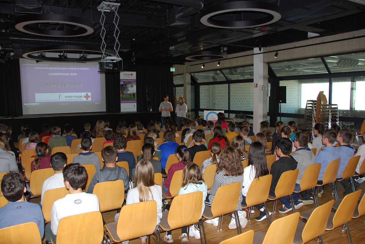 Bei der Scheckiwwerreechung vum 25. Mäerz 2019 hunn d’Madame Oth an den Här Garnie d’Wichtegkeet vun der Therapie mat Déieren (Päerd, Ieselen, Geessen...) ënnerstrach. Si hunn de Kanner „Villmools Merci“ gesot fir hir Méi an hiert soziaalt Engagement. Den Här Buergermeeschter Jean-Paul Jost huet sech dësem Merci ugeschloss. Mat vill Freed hunn d’Kanner dunn de Scheck iwwerreecht.