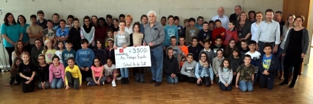 Mit Hilfe der Gemeindeverantwortlichen, welche den Erlös aufgerundet haben, konnten die Schüler 3.500 € für einen guten Zweck spenden. Das Geld geht an die Reittherapie in Monnerich (ATE – Association Thérapie Équestre).