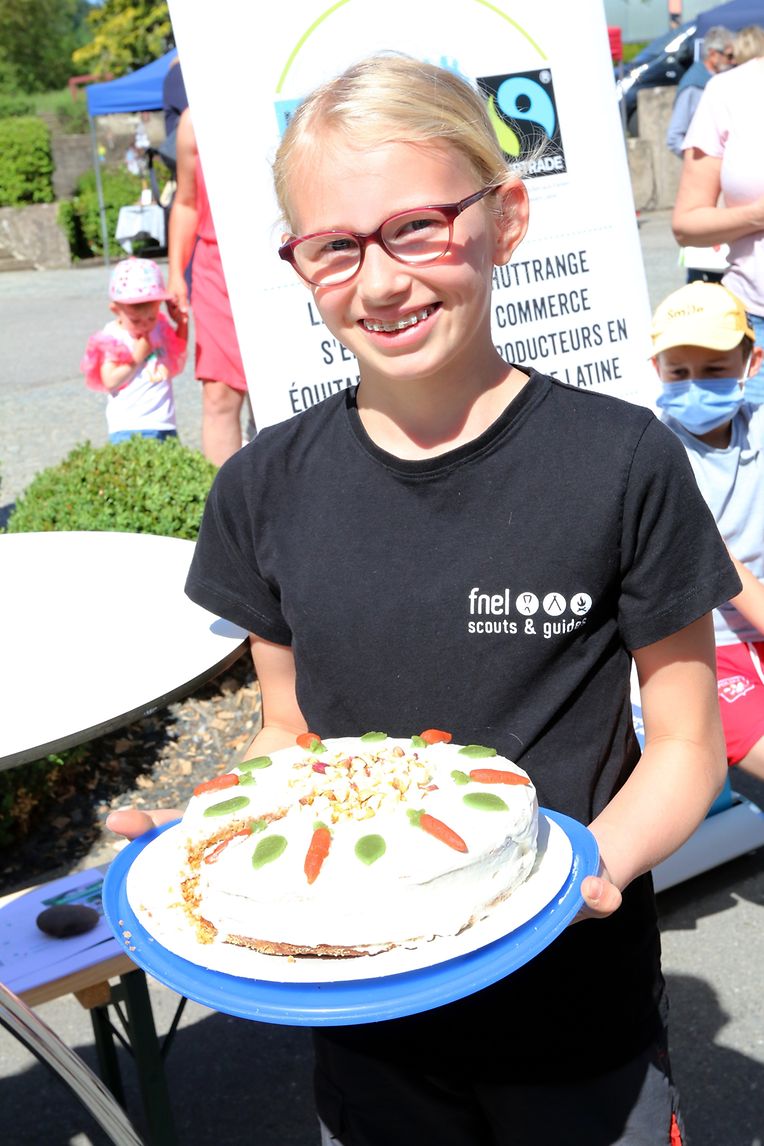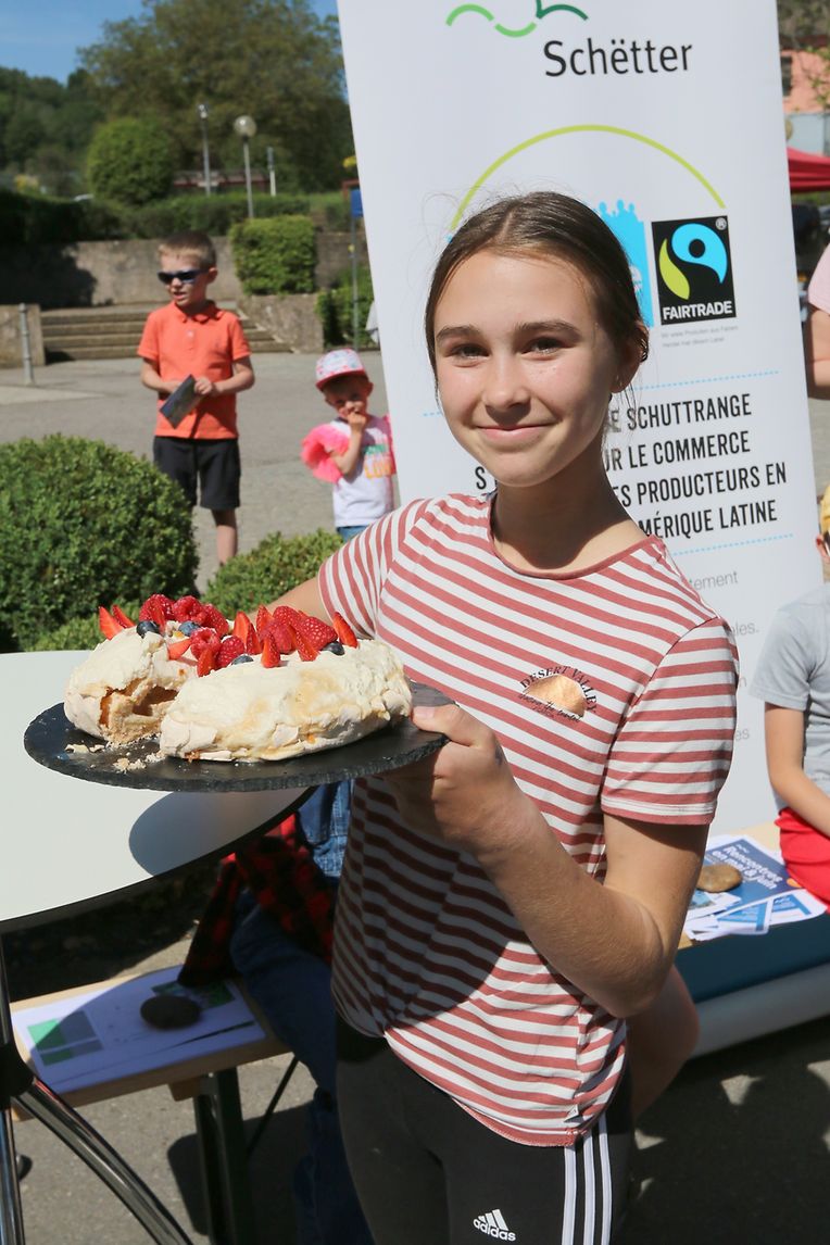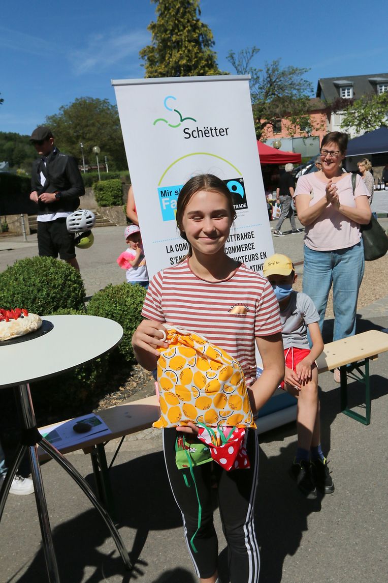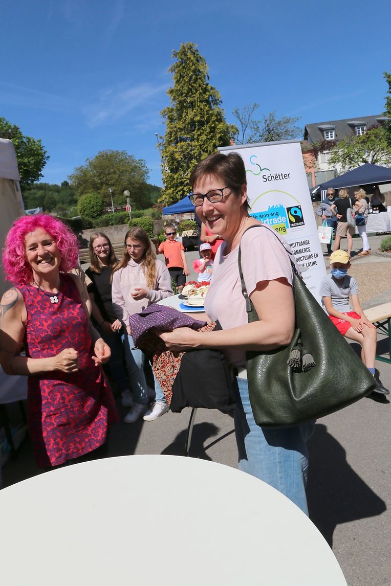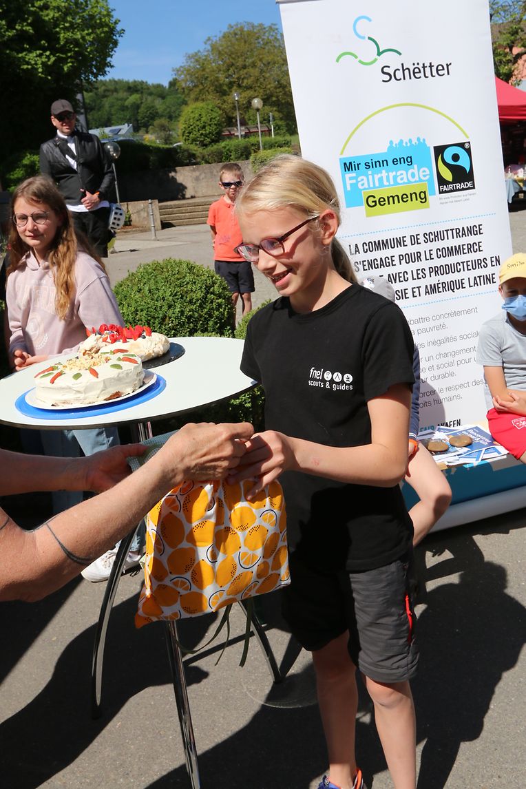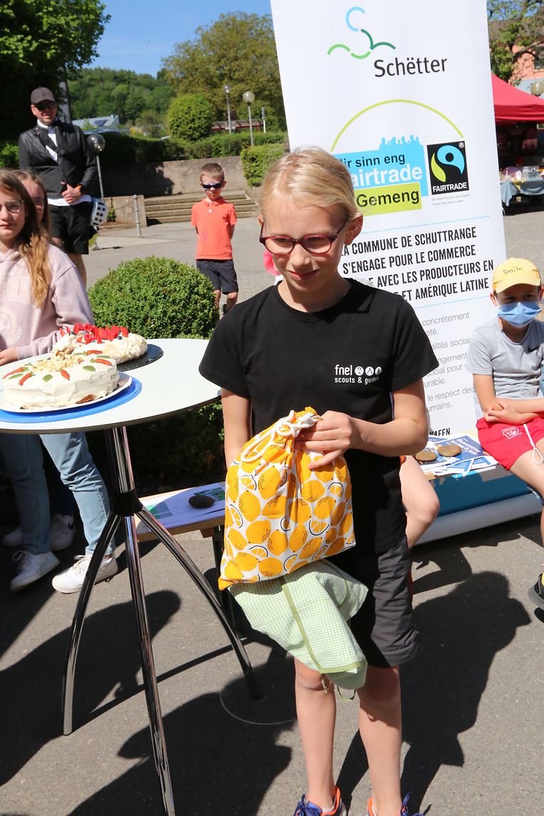 Le concours de gâteaux a eu lieu juste à côté : dans quatre catégories, le plus beau et le plus délicieux gâteau a été choisi par un jury compétent pour enfants et adultes. Chaque gâteau devait contenir au moins un produit Fairtrade. Les gagnants ont reçu un joli tablier cousu à la main des « Fraen a Mammen » ainsi qu'un sac de produits Fairtrade.