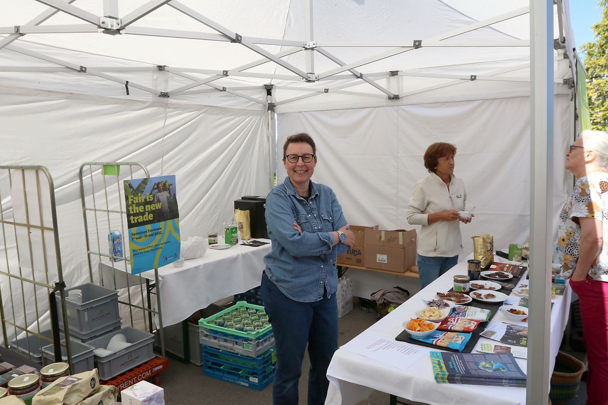 Um Stand vu Composition vun Al-Schëtter konnt een des Weideren Bouqueten mat Fairtrade-Blumme kafen.