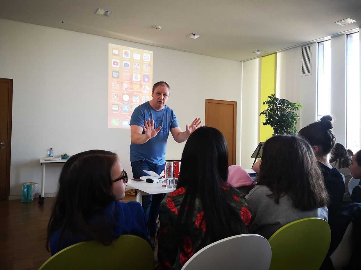 Hier bekamen die Schüler Einblick in die Welt der Smartphonenutzung und der alternativen Suchmaschinen. Was gibt es jenseits von Google- und WhatsAppwelt? Wie wappne ich mich gegen Fake News und wie kann ich im Falle von Cybermobbing reagieren? Hochaktuelle Fragen wurden durchdiskutiert und anschaulich beantwortet.